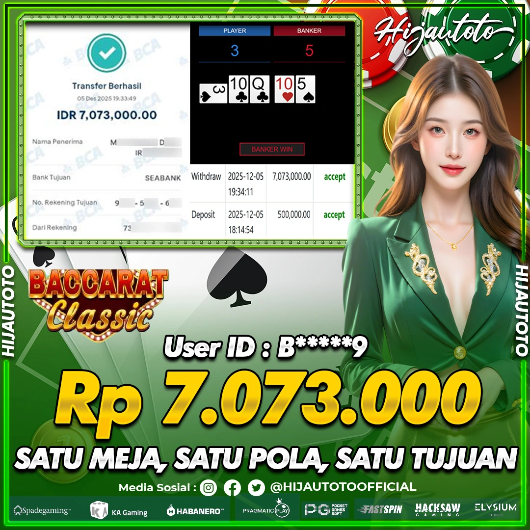 Selamat datang di HIJAUTOTO, tempatnya seru-seruan dan cuan besar! Mulai main cukup dengan modal Rp5.000 aja, taruhan super murah dari Rp100 perak! Mau main slot yang penuh warna? Atau togel dari 20 pasaran paling hits? Atau mungkin tembak ikan yang bikin deg-degan? Tenang, ada juga taruhan bola, sabung ayam, dan live casino yang bikin suasana makin hidup! Daftar sekarang dan dapetin bonus new member 100% langsung, biar modalmu makin tebal. Deposit gampang banget, bisa pakai QRIS, dan kalau butuh bantuan, customer service kita siap 24 jam nonstop. Jadi, tunggu apa lagi? Yuk, gabung dan bawa pulang kemenangannya cuma di HIJAUTOTO!