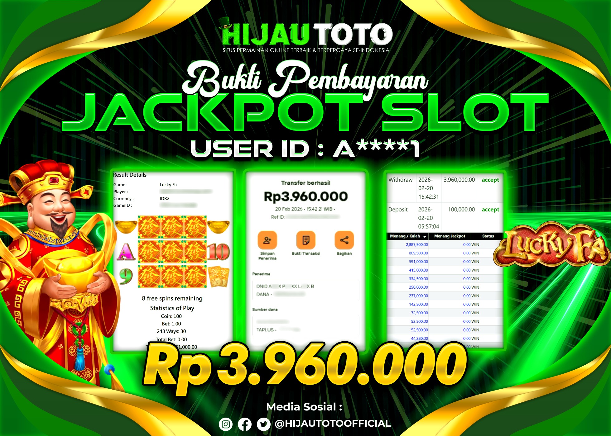 Bergabung dengan HIJAUTOTO sangat mudah dan cepat. Cukup lakukan pendaftaran dengan data lengkap, lakukan deposit minimal Rp5.000 melalui berbagai metode termasuk QRIS, dan mulai bertaruh dengan minimal taruhan Rp100. Dapatkan juga bonus new member 100% untuk modal bermain lebih besar.