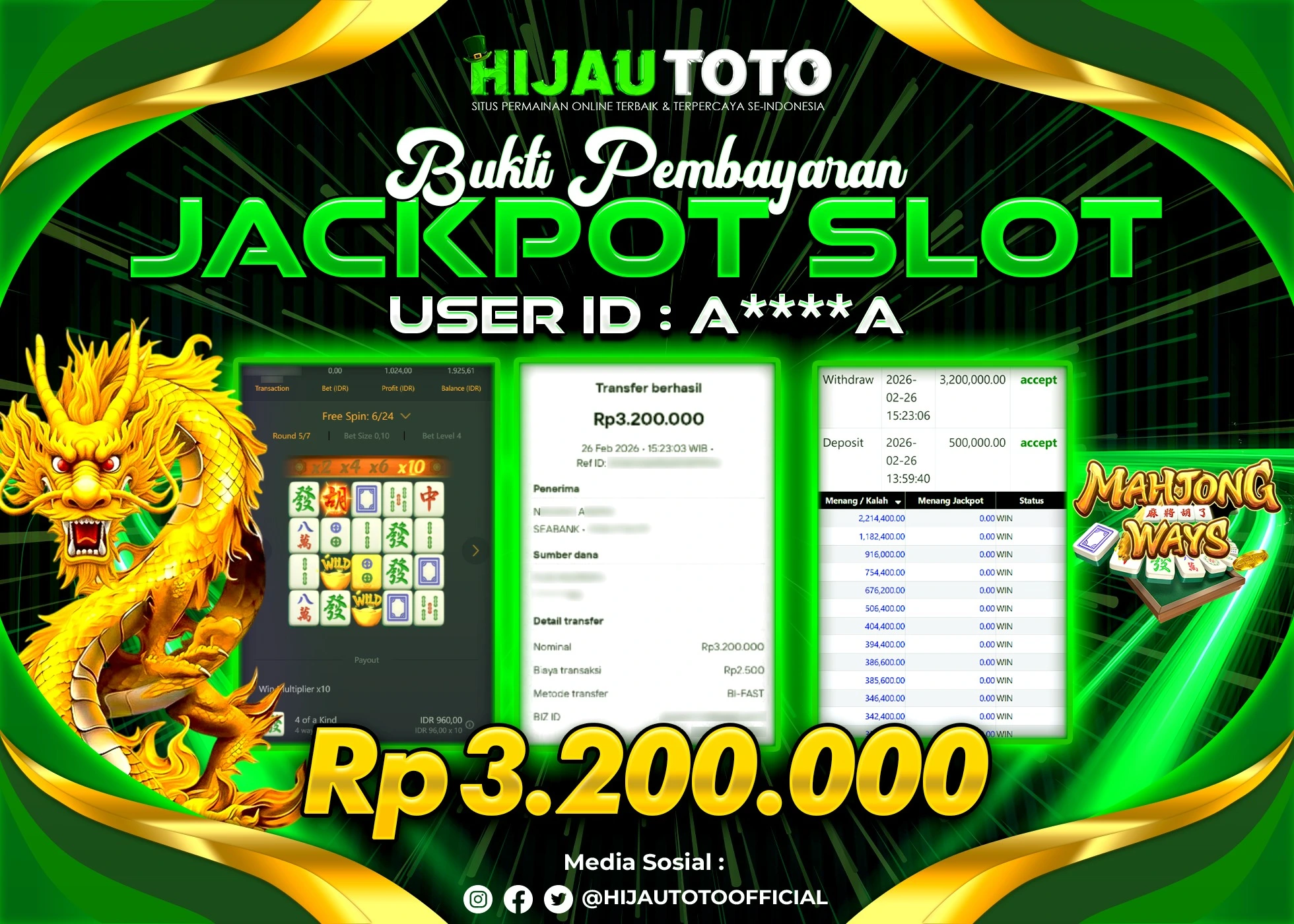 Selamat datang di HIJAUTOTO, tempatnya seru-seruan dan cuan besar! Mulai main cukup dengan modal Rp5.000 aja, taruhan super murah dari Rp100 perak! Mau main slot yang penuh warna? Atau togel dari 20 pasaran paling hits? Atau mungkin tembak ikan yang bikin deg-degan? Tenang, ada juga taruhan bola, sabung ayam, dan live casino yang bikin suasana makin hidup! Daftar sekarang dan dapetin bonus new member 100% langsung, biar modalmu makin tebal. Deposit gampang banget, bisa pakai QRIS, dan kalau butuh bantuan, customer service kita siap 24 jam nonstop. Jadi, tunggu apa lagi? Yuk, gabung dan bawa pulang kemenangannya cuma di HIJAUTOTO!