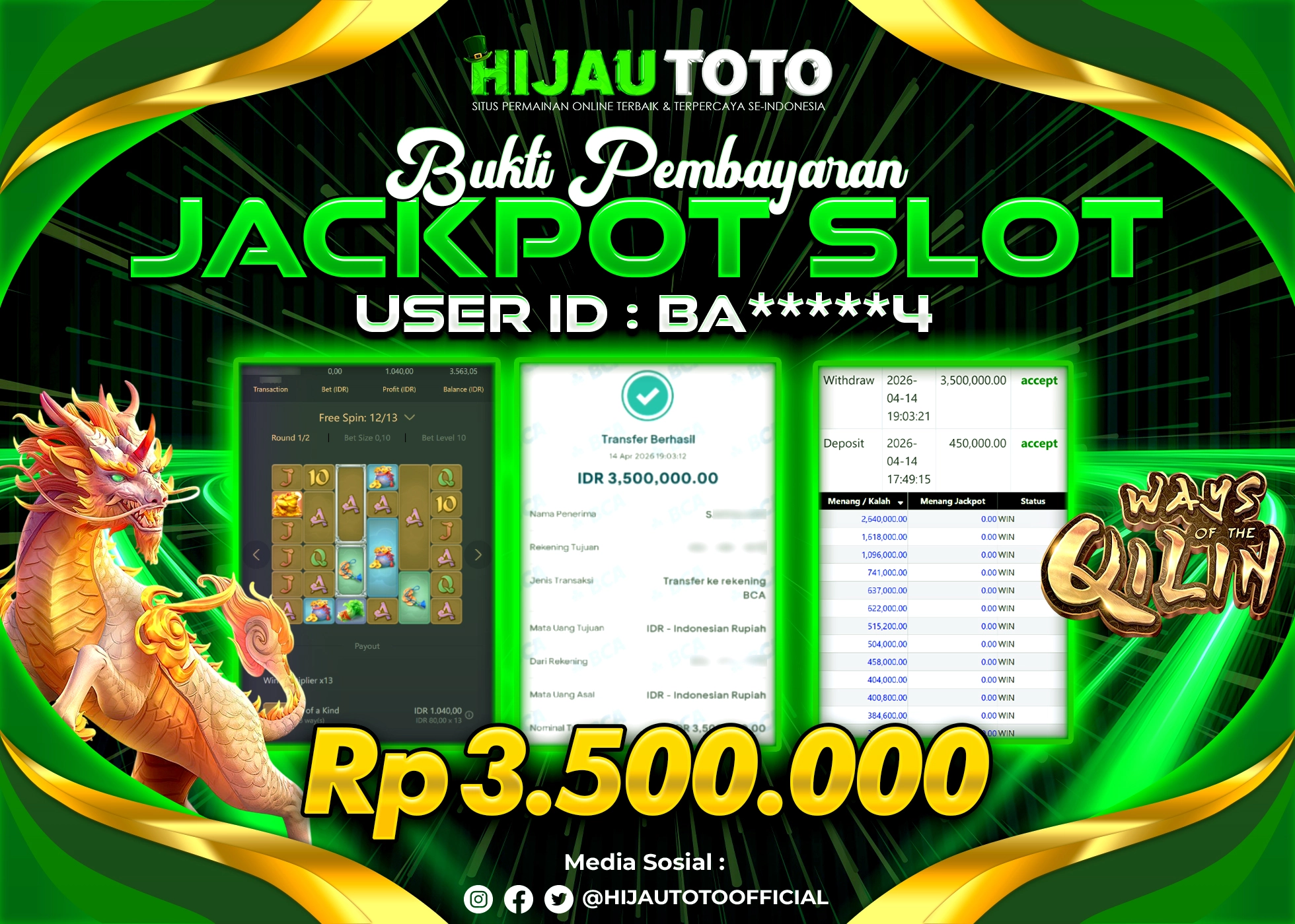 Selamat datang di HIJAUTOTO, tempatnya seru-seruan dan cuan besar! Mulai main cukup dengan modal Rp5.000 aja, taruhan super murah dari Rp100 perak! Mau main slot yang penuh warna? Atau togel dari 20 pasaran paling hits? Atau mungkin tembak ikan yang bikin deg-degan? Tenang, ada juga taruhan bola, sabung ayam, dan live casino yang bikin suasana makin hidup! Daftar sekarang dan dapetin bonus new member 100% langsung, biar modalmu makin tebal. Deposit gampang banget, bisa pakai QRIS, dan kalau butuh bantuan, customer service kita siap 24 jam nonstop. Jadi, tunggu apa lagi? Yuk, gabung dan bawa pulang kemenangannya cuma di HIJAUTOTO!