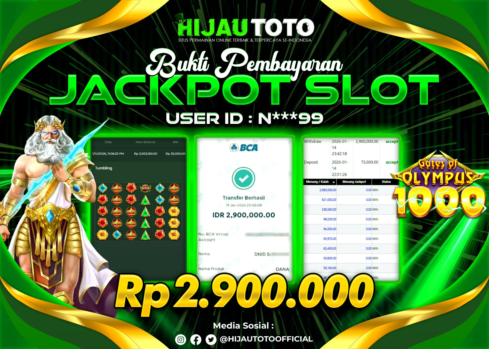 Selamat datang di HIJAUTOTO, tempatnya seru-seruan dan cuan besar! Mulai main cukup dengan modal Rp5.000 aja, taruhan super murah dari Rp100 perak! Mau main slot yang penuh warna? Atau togel dari 20 pasaran paling hits? Atau mungkin tembak ikan yang bikin deg-degan? Tenang, ada juga taruhan bola, sabung ayam, dan live casino yang bikin suasana makin hidup! Daftar sekarang dan dapetin bonus new member 100% langsung, biar modalmu makin tebal. Deposit gampang banget, bisa pakai QRIS, dan kalau butuh bantuan, customer service kita siap 24 jam nonstop. Jadi, tunggu apa lagi? Yuk, gabung dan bawa pulang kemenangannya cuma di HIJAUTOTO!