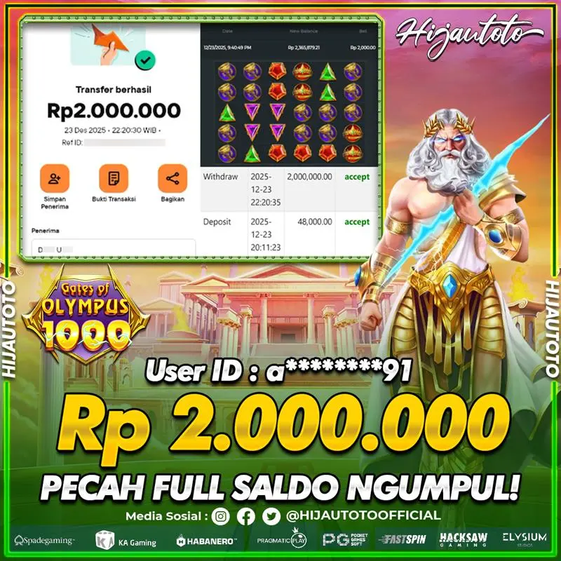 β¨ JACKPOT DI SLOT GATES OF OLYMPUS 1000 β¨