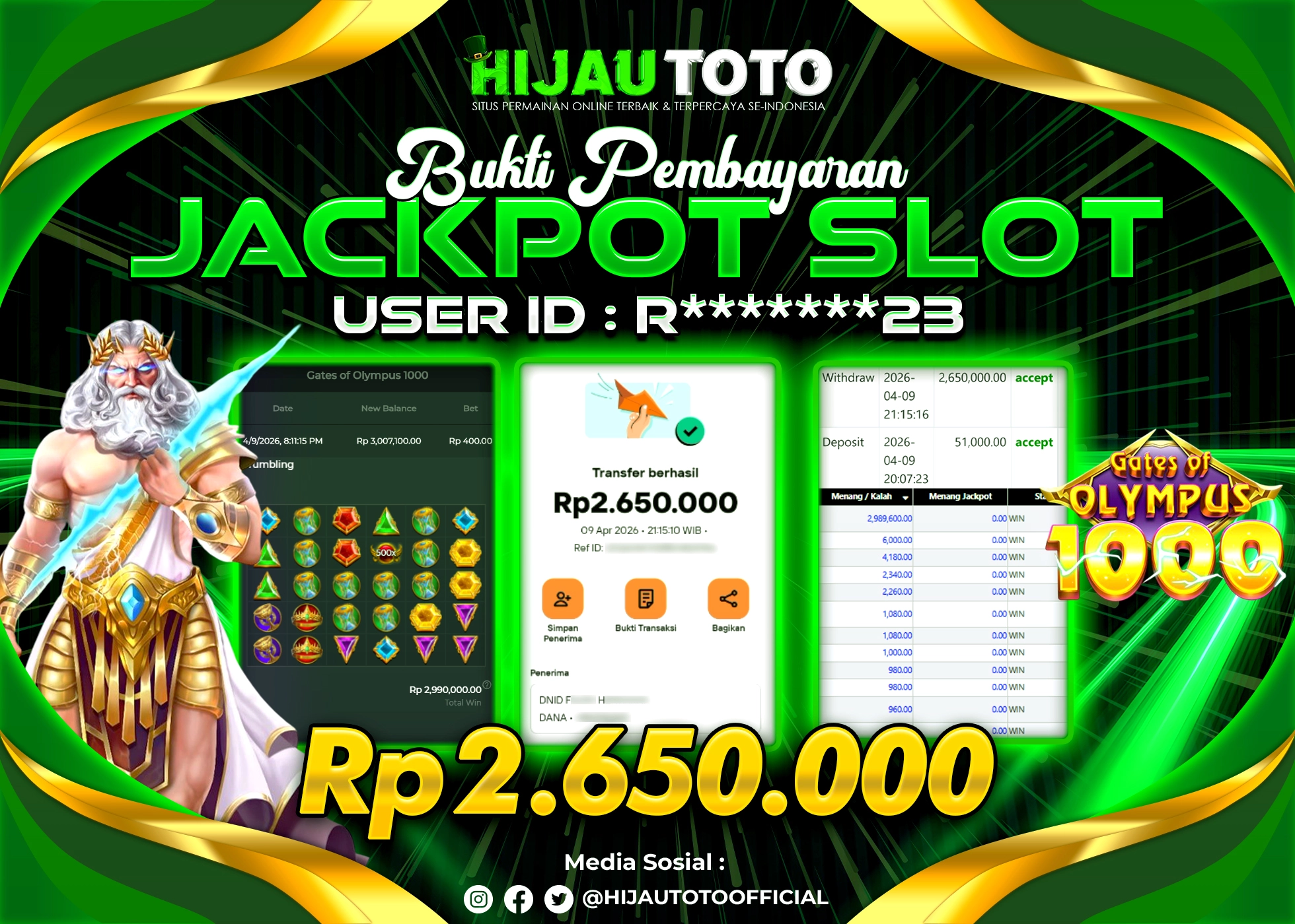 Selamat datang di HIJAUTOTO, tempatnya seru-seruan dan cuan besar! Mulai main cukup dengan modal Rp5.000 aja, taruhan super murah dari Rp100 perak! Mau main slot yang penuh warna? Atau togel dari 20 pasaran paling hits? Atau mungkin tembak ikan yang bikin deg-degan? Tenang, ada juga taruhan bola, sabung ayam, dan live casino yang bikin suasana makin hidup! Daftar sekarang dan dapetin bonus new member 100% langsung, biar modalmu makin tebal. Deposit gampang banget, bisa pakai QRIS, dan kalau butuh bantuan, customer service kita siap 24 jam nonstop. Jadi, tunggu apa lagi? Yuk, gabung dan bawa pulang kemenangannya cuma di HIJAUTOTO!