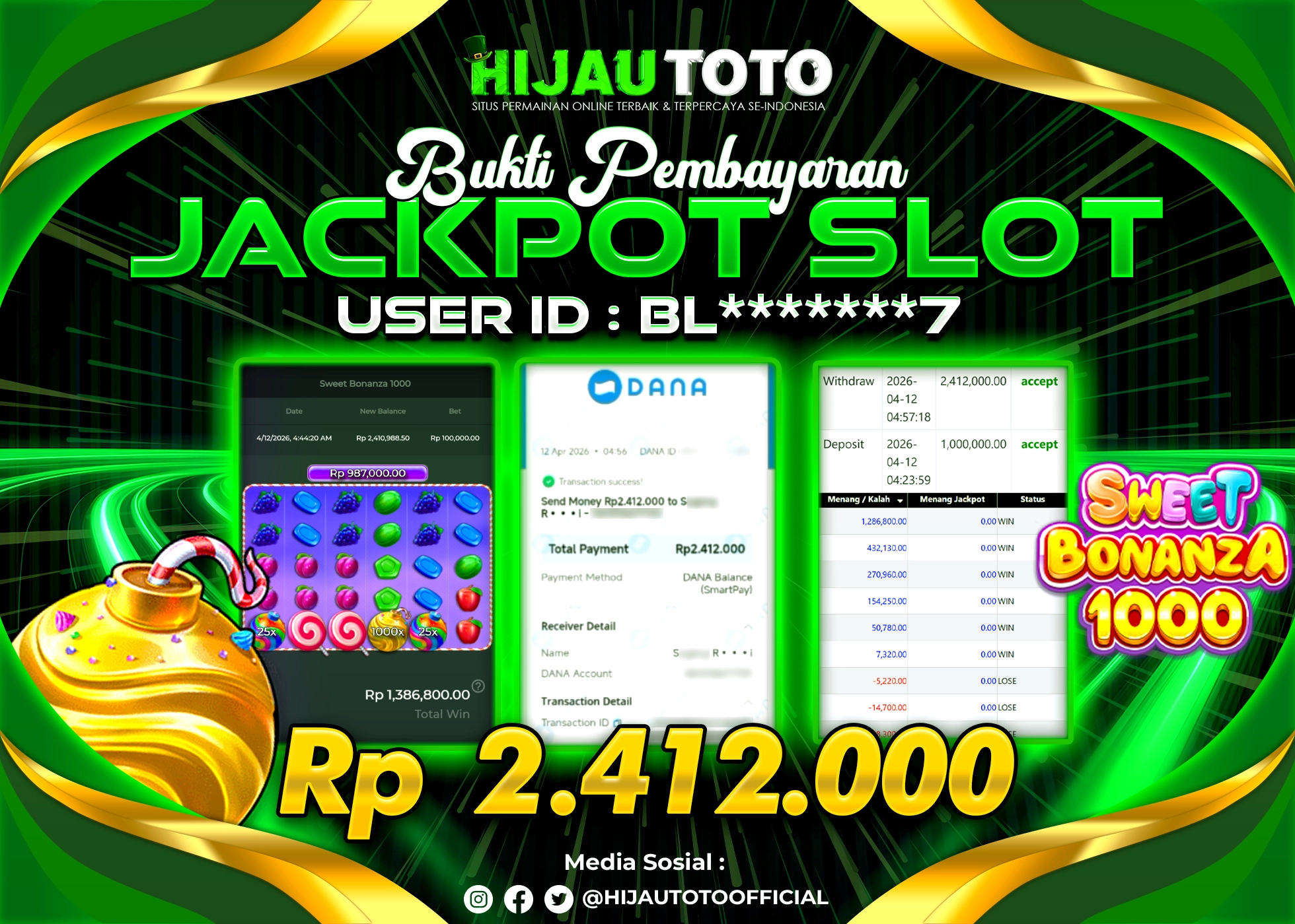 β¨ JACKPOT DI SLOT SWEET BONANZA 1000 β¨