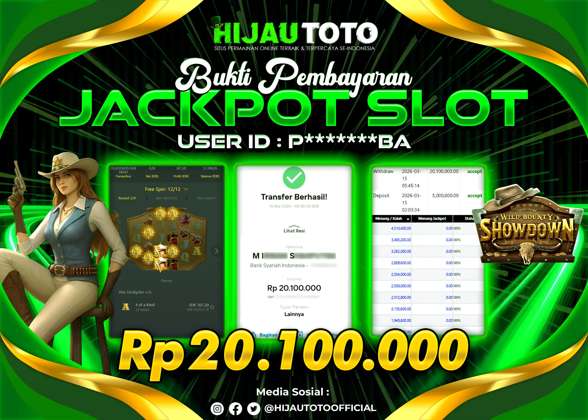 Selamat Kepada Member HIJAUTOTO P*******BA Telah Jackpot Di SLOT WILD BOUNTY SHOWDOWN