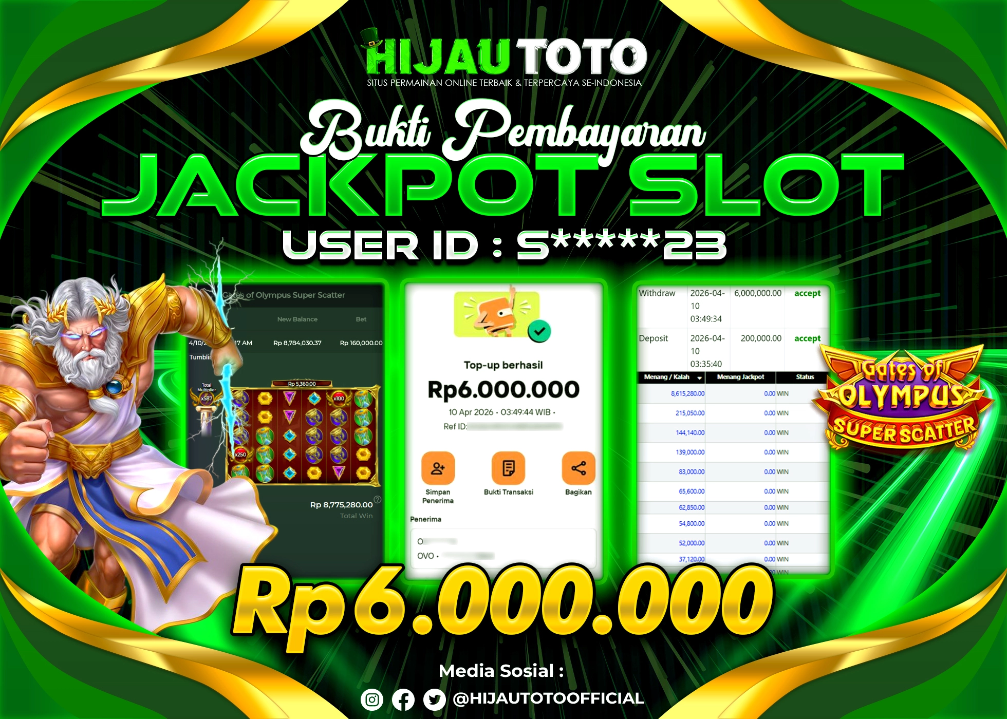 Selamat datang di HIJAUTOTO, tempatnya seru-seruan dan cuan besar! Mulai main cukup dengan modal Rp5.000 aja, taruhan super murah dari Rp100 perak! Mau main slot yang penuh warna? Atau togel dari 20 pasaran paling hits? Atau mungkin tembak ikan yang bikin deg-degan? Tenang, ada juga taruhan bola, sabung ayam, dan live casino yang bikin suasana makin hidup! Daftar sekarang dan dapetin bonus new member 100% langsung, biar modalmu makin tebal. Deposit gampang banget, bisa pakai QRIS, dan kalau butuh bantuan, customer service kita siap 24 jam nonstop. Jadi, tunggu apa lagi? Yuk, gabung dan bawa pulang kemenangannya cuma di HIJAUTOTO!