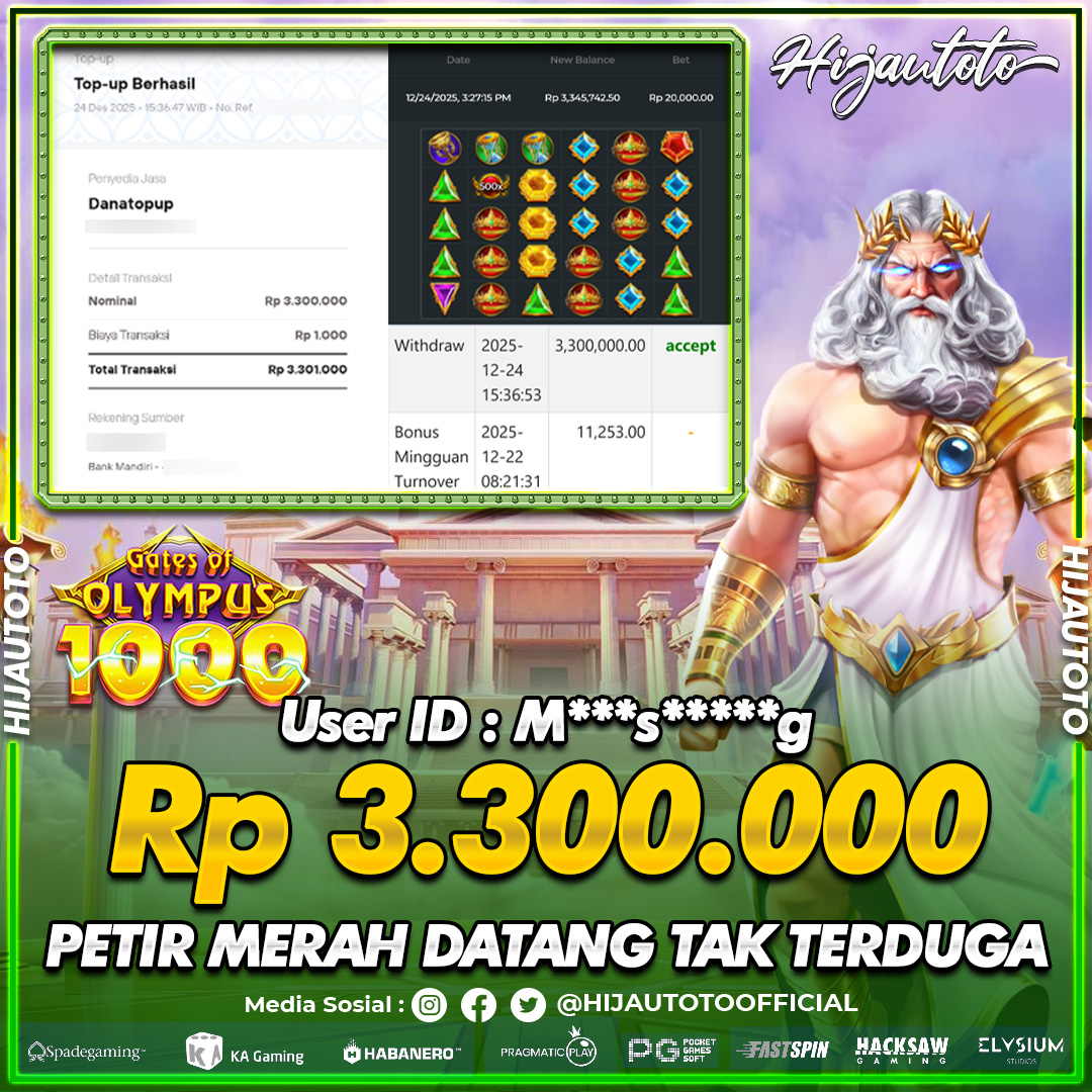 β¨ JACKPOT DI SLOT GATES OF OLYMPUS 1000 β¨