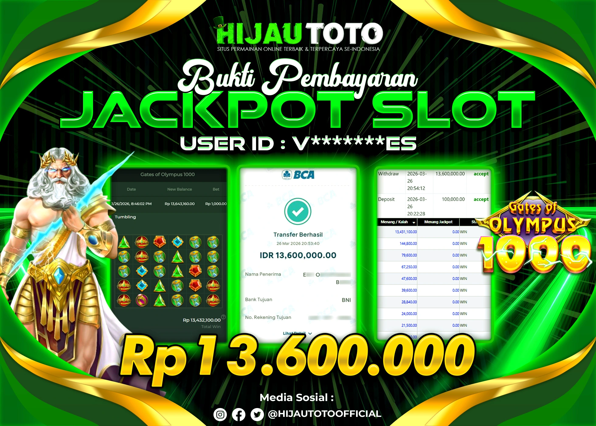 Bergabung dengan HIJAUTOTO sangat mudah dan cepat. Cukup lakukan pendaftaran dengan data lengkap, lakukan deposit minimal Rp5.000 melalui berbagai metode termasuk QRIS, dan mulai bertaruh dengan minimal taruhan Rp100. Dapatkan juga bonus new member 100% untuk modal bermain lebih besar.