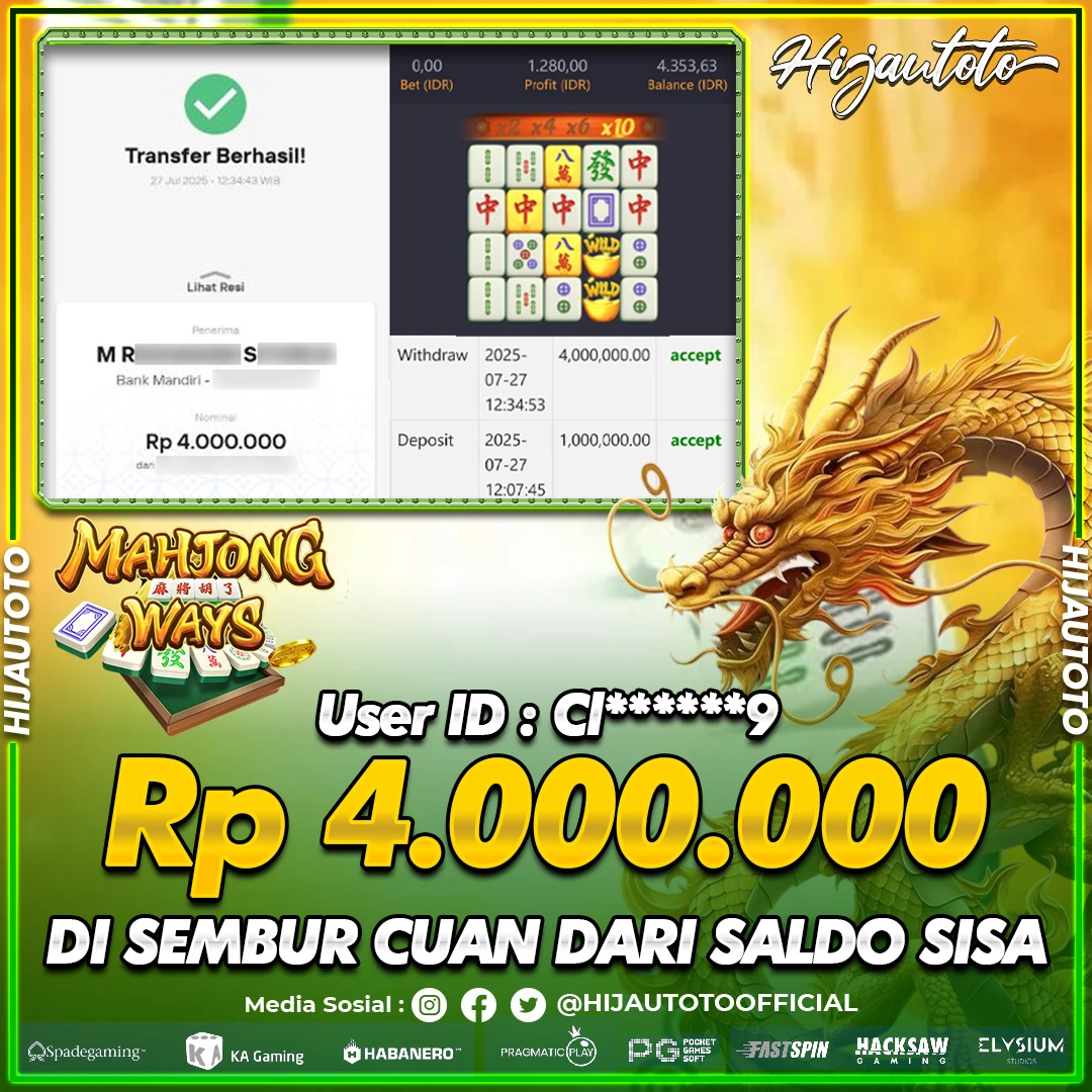 Selamat datang di HIJAUTOTO, tempatnya seru-seruan dan cuan besar! Mulai main cukup dengan modal Rp5.000 aja, taruhan super murah dari Rp100 perak! Mau main slot yang penuh warna? Atau togel dari 20 pasaran paling hits? Atau mungkin tembak ikan yang bikin deg-degan? Tenang, ada juga taruhan bola, sabung ayam, dan live casino yang bikin suasana makin hidup! Daftar sekarang dan dapetin bonus new member 100% langsung, biar modalmu makin tebal. Deposit gampang banget, bisa pakai QRIS, dan kalau butuh bantuan, customer service kita siap 24 jam nonstop. Jadi, tunggu apa lagi? Yuk, gabung dan bawa pulang kemenangannya cuma di HIJAUTOTO!