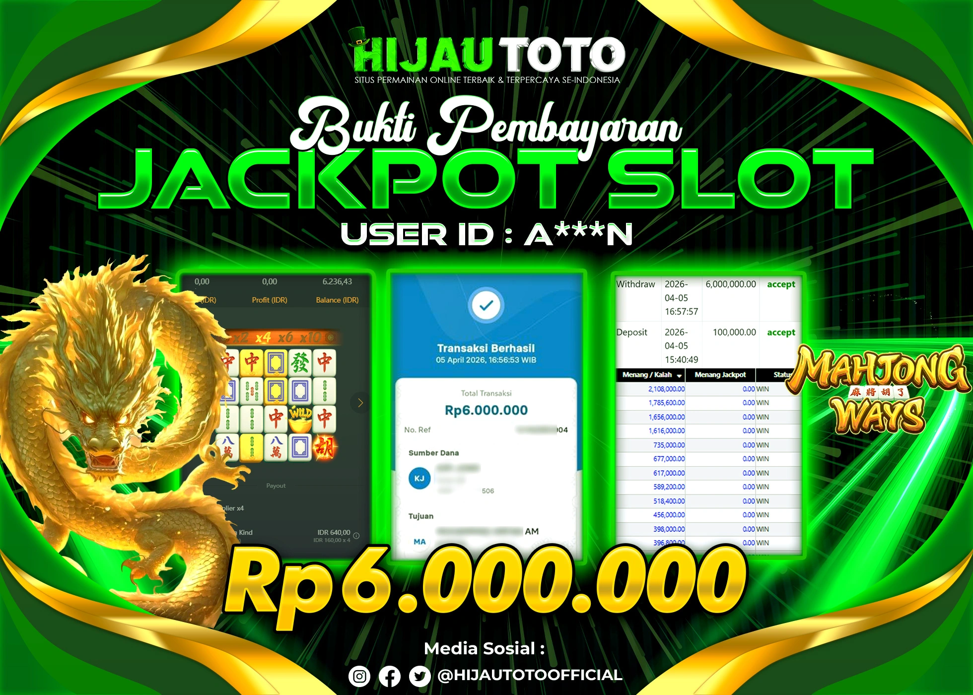 Selamat datang di HIJAUTOTO, tempatnya seru-seruan dan cuan besar! Mulai main cukup dengan modal Rp5.000 aja, taruhan super murah dari Rp100 perak! Mau main slot yang penuh warna? Atau togel dari 20 pasaran paling hits? Atau mungkin tembak ikan yang bikin deg-degan? Tenang, ada juga taruhan bola, sabung ayam, dan live casino yang bikin suasana makin hidup! Daftar sekarang dan dapetin bonus new member 100% langsung, biar modalmu makin tebal. Deposit gampang banget, bisa pakai QRIS, dan kalau butuh bantuan, customer service kita siap 24 jam nonstop. Jadi, tunggu apa lagi? Yuk, gabung dan bawa pulang kemenangannya cuma di HIJAUTOTO!