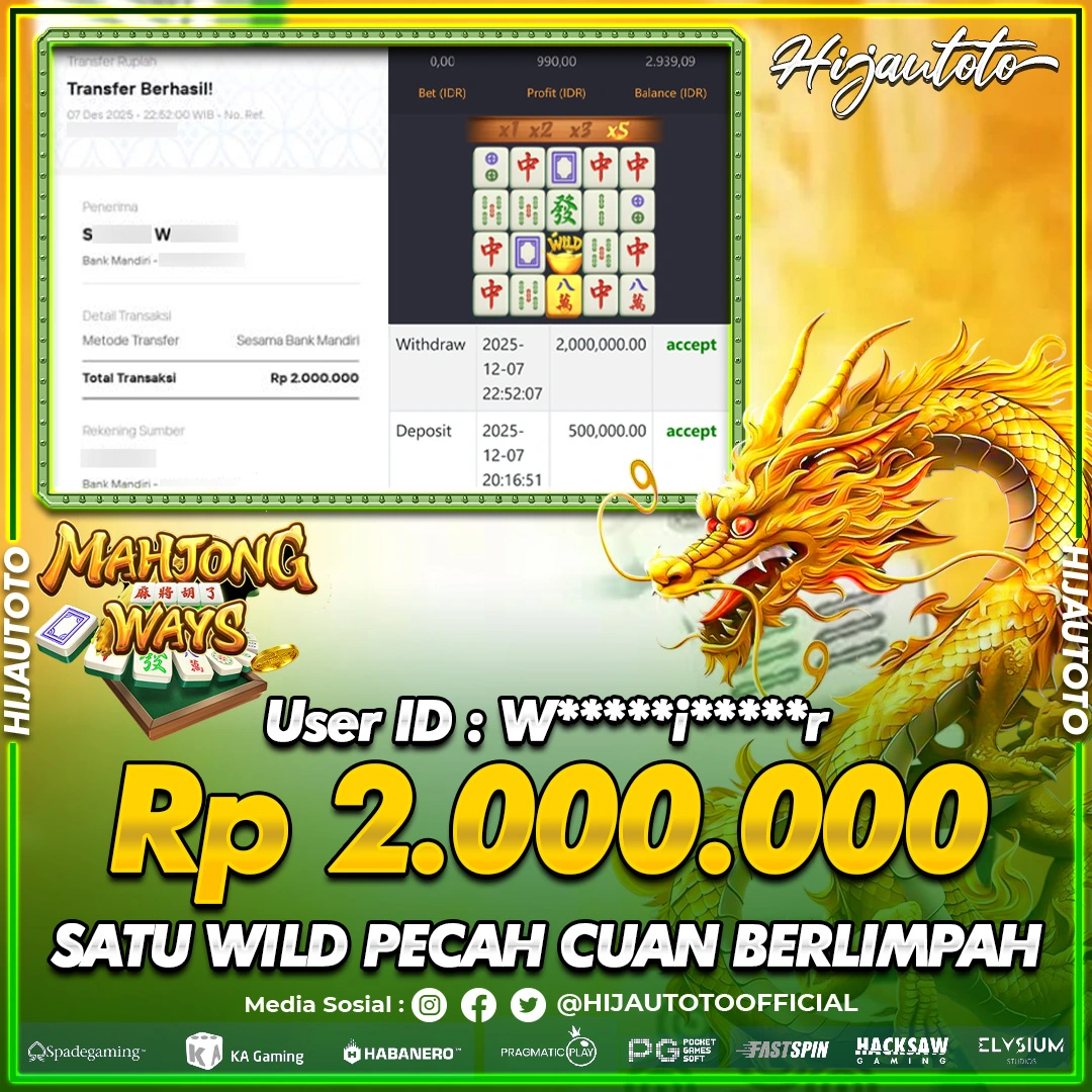 Cuma di HIJAUTOTO, tempat paling AMAN, CEPAT, & TERPERCAYA buat pecinta game SLOT MAHJONG WAYS!