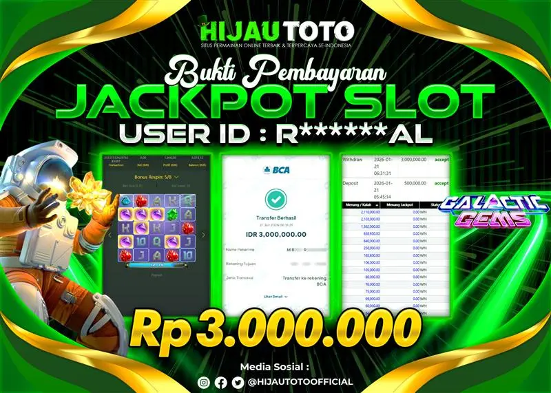 Selamat Kepada Member HIJAUTOTO R******AL Telah Jackpot Di SLOT GALACTIC GEMS