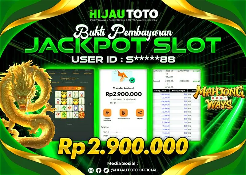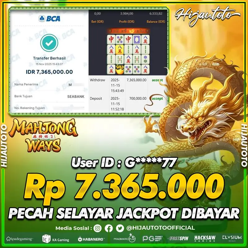 Karena berhasil memenangkan Rp.Rp.3.650.000 dari permainan seru SLOT MAHJONG WAYS di HIJAUTOTO! πŸ’°πŸ’Έ