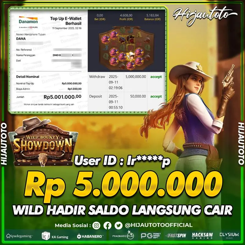 Selamat Kepada Member HIJAUTOTO IR*****P Telah Jackpot Di SLOT WILD BOUNTY SHOWDOWN