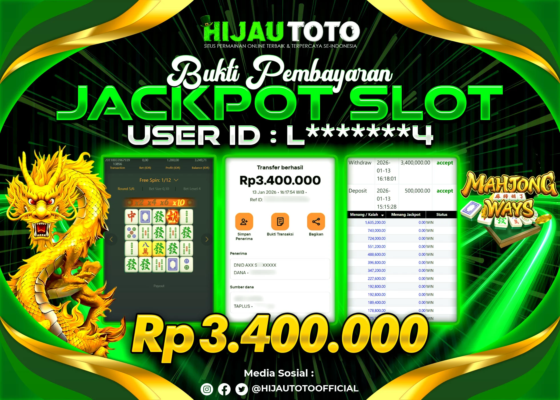 Bergabung dengan HIJAUTOTO sangat mudah dan cepat. Cukup lakukan pendaftaran dengan data lengkap, lakukan deposit minimal Rp5.000 melalui berbagai metode termasuk QRIS, dan mulai bertaruh dengan minimal taruhan Rp100. Dapatkan juga bonus new member 100% untuk modal bermain lebih besar.