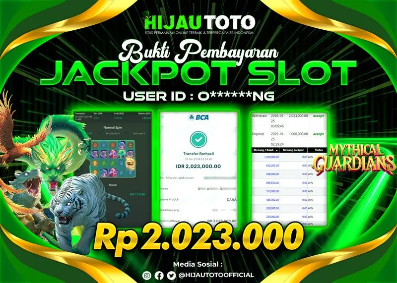 Selamat Kepada Member HIJAUTOTO O******NG Telah Jackpot Di SLOT MYTHICAL GUARDIANS