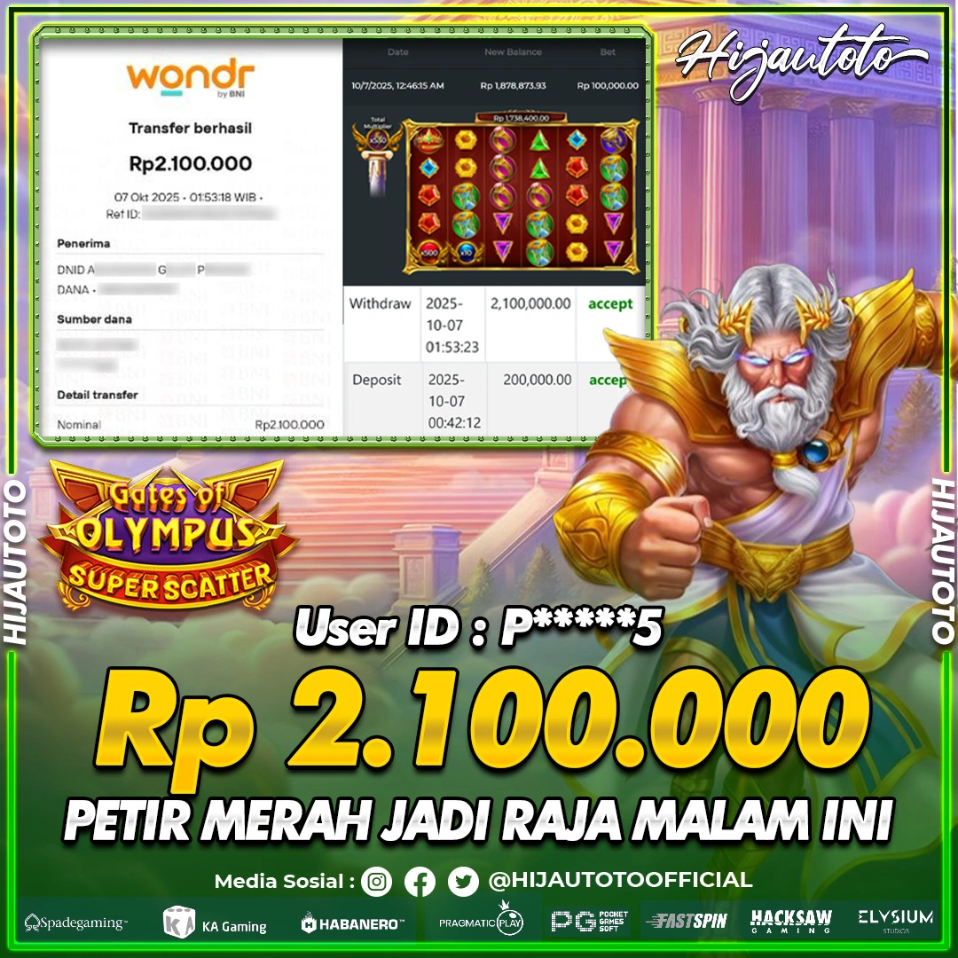 Karena berhasil memenangkan Rp.Rp.2.000.000 dari permainan seru SLOT TOGEL HONGKONG LOTTO di HIJAUTOTO! πŸ’°πŸ’Έ