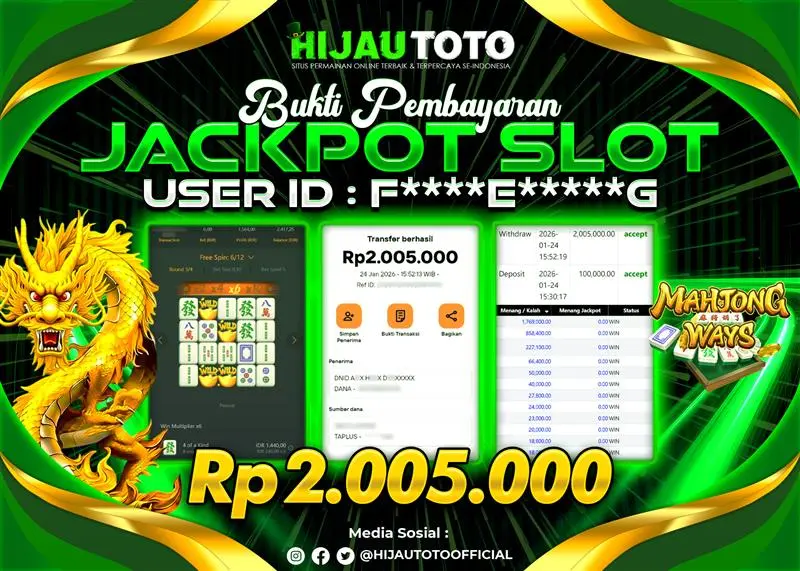 Selamat datang di HIJAUTOTO, tempatnya seru-seruan dan cuan besar! Mulai main cukup dengan modal Rp5.000 aja, taruhan super murah dari Rp100 perak! Mau main slot yang penuh warna? Atau togel dari 20 pasaran paling hits? Atau mungkin tembak ikan yang bikin deg-degan? Tenang, ada juga taruhan bola, sabung ayam, dan live casino yang bikin suasana makin hidup! Daftar sekarang dan dapetin bonus new member 100% langsung, biar modalmu makin tebal. Deposit gampang banget, bisa pakai QRIS, dan kalau butuh bantuan, customer service kita siap 24 jam nonstop. Jadi, tunggu apa lagi? Yuk, gabung dan bawa pulang kemenangannya cuma di HIJAUTOTO!