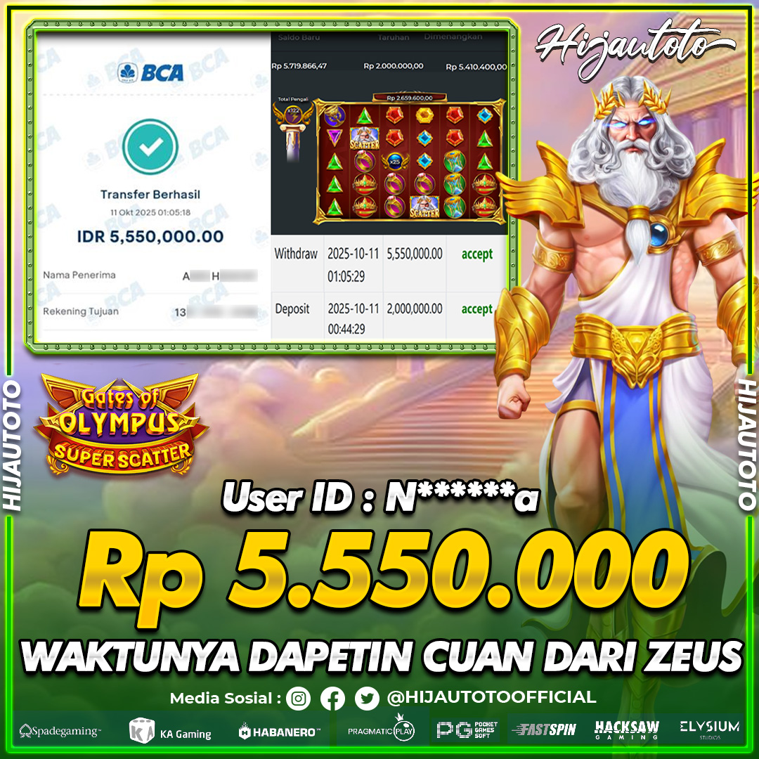 Karena berhasil memenangkan Rp.Rp.2.100.000 dari permainan seru SLOT MEGA SIC BO di HIJAUTOTO! πŸ’°πŸ’Έ
