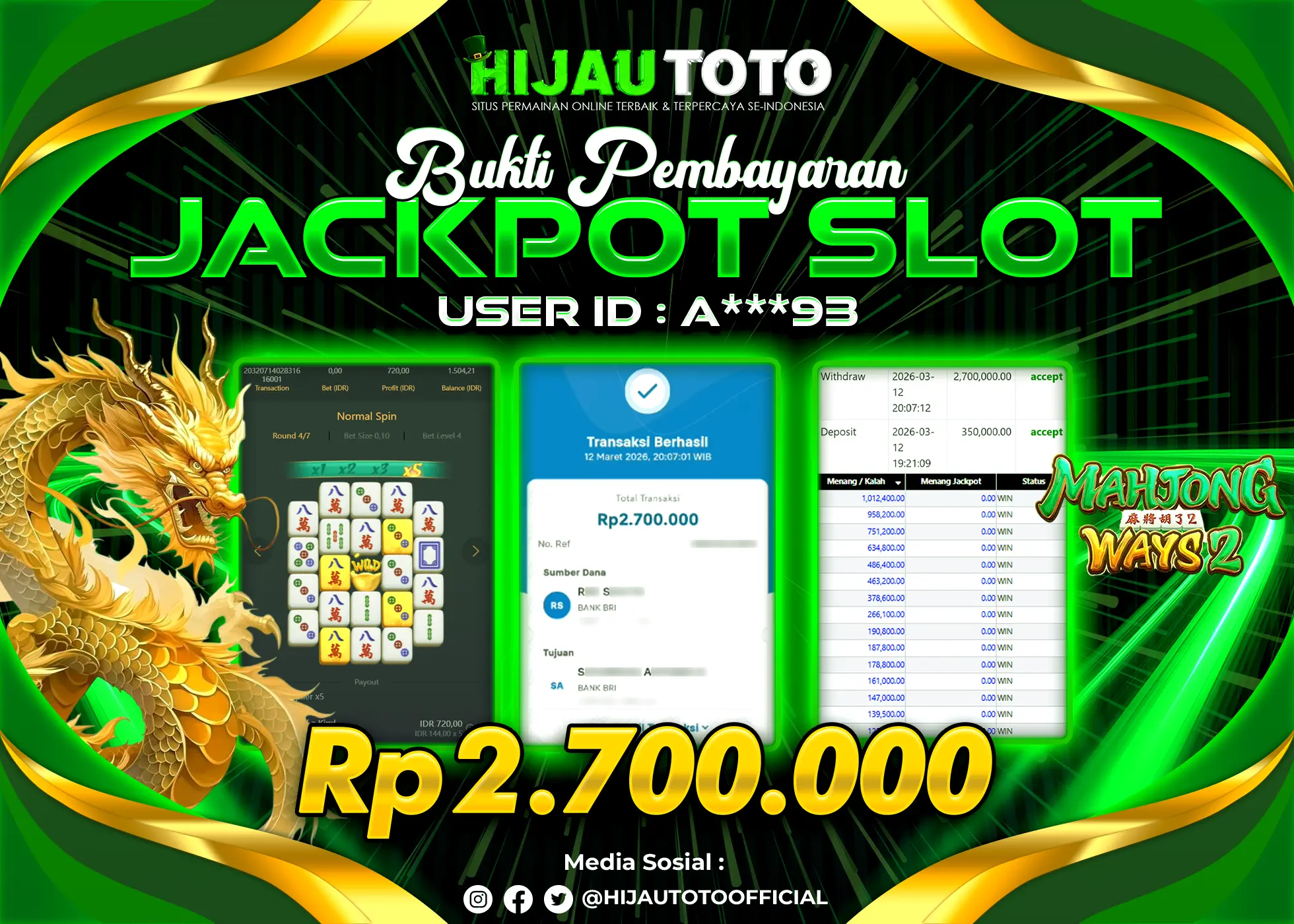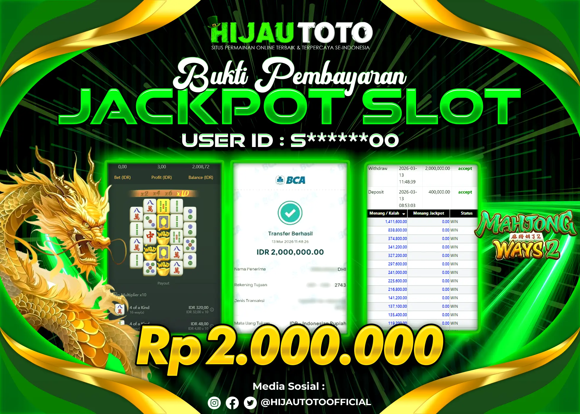 Bergabung dengan HIJAUTOTO sangat mudah dan cepat. Cukup lakukan pendaftaran dengan data lengkap, lakukan deposit minimal Rp5.000 melalui berbagai metode termasuk QRIS, dan mulai bertaruh dengan minimal taruhan Rp100. Dapatkan juga bonus new member 100% untuk modal bermain lebih besar.