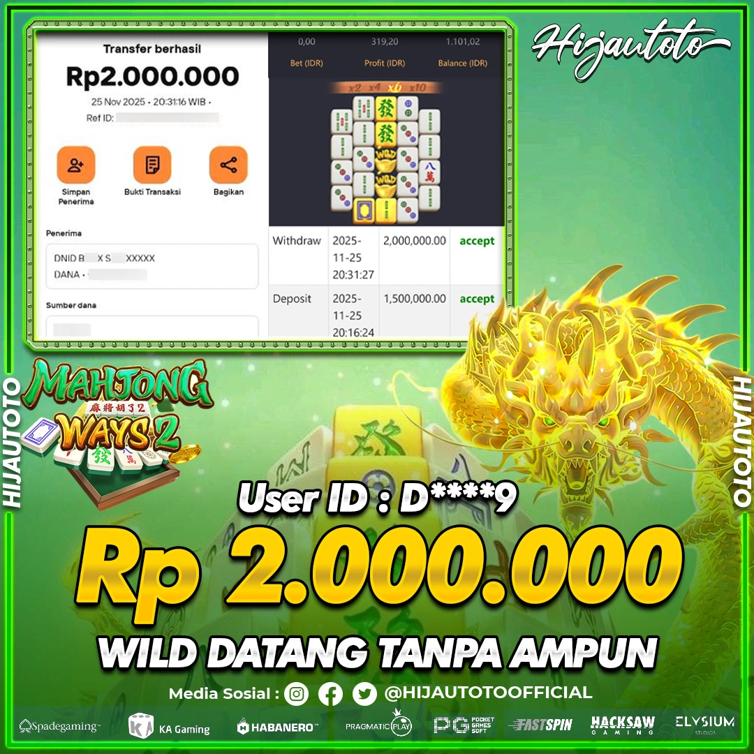 Selamat datang di HIJAUTOTO, tempatnya seru-seruan dan cuan besar! Mulai main cukup dengan modal Rp5.000 aja, taruhan super murah dari Rp100 perak! Mau main slot yang penuh warna? Atau togel dari 20 pasaran paling hits? Atau mungkin tembak ikan yang bikin deg-degan? Tenang, ada juga taruhan bola, sabung ayam, dan live casino yang bikin suasana makin hidup! Daftar sekarang dan dapetin bonus new member 100% langsung, biar modalmu makin tebal. Deposit gampang banget, bisa pakai QRIS, dan kalau butuh bantuan, customer service kita siap 24 jam nonstop. Jadi, tunggu apa lagi? Yuk, gabung dan bawa pulang kemenangannya cuma di HIJAUTOTO!