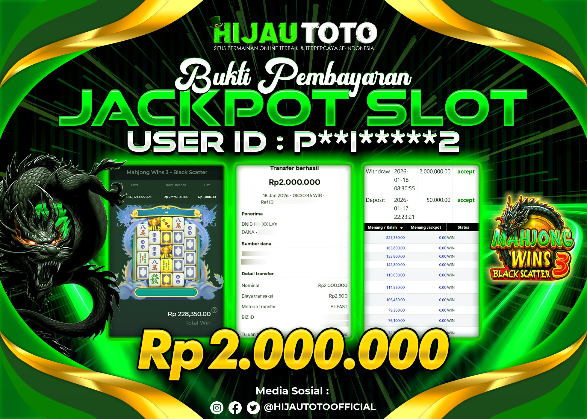 Selamat Kepada Member HIJAUTOTO P**I*****2 Telah Jackpot Di SLOT MAHJONG WINS 3 BLACK SCATTER