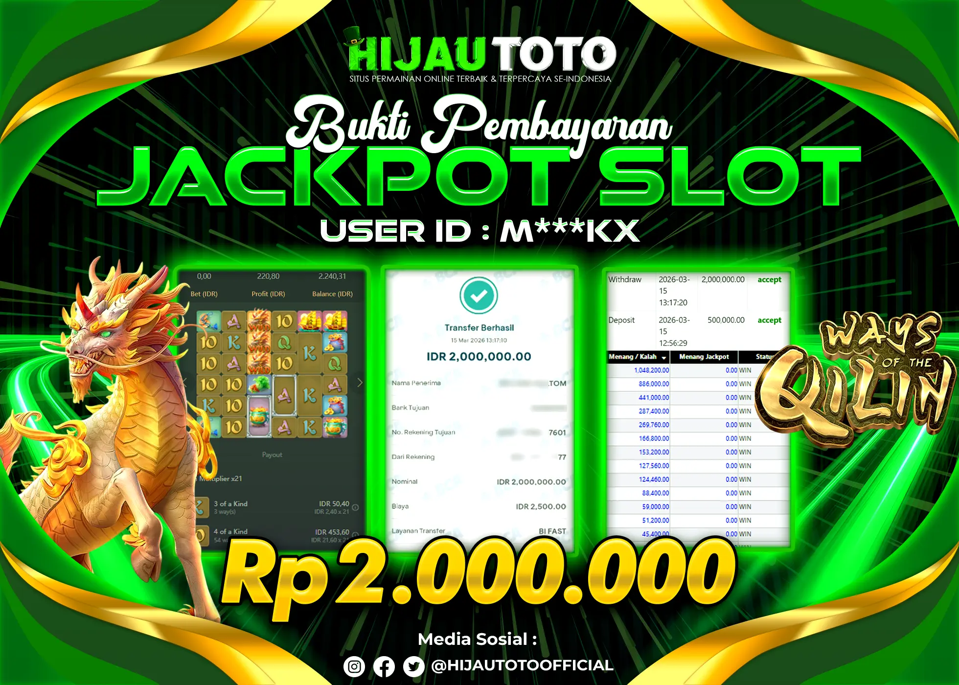 Selamat Kepada Member HIJAUTOTO M****X Telah Jackpot Di SLOT WAYS OF THE QILIN