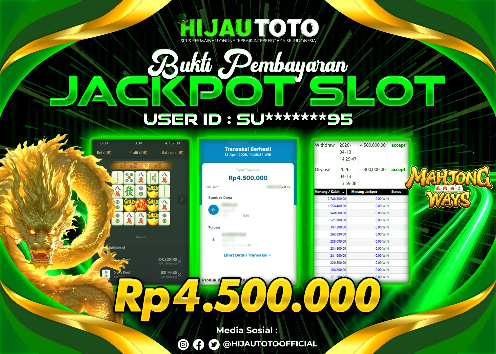 Selamat datang di HIJAUTOTO, tempatnya seru-seruan dan cuan besar! Mulai main cukup dengan modal Rp5.000 aja, taruhan super murah dari Rp100 perak! Mau main slot yang penuh warna? Atau togel dari 20 pasaran paling hits? Atau mungkin tembak ikan yang bikin deg-degan? Tenang, ada juga taruhan bola, sabung ayam, dan live casino yang bikin suasana makin hidup! Daftar sekarang dan dapetin bonus new member 100% langsung, biar modalmu makin tebal. Deposit gampang banget, bisa pakai QRIS, dan kalau butuh bantuan, customer service kita siap 24 jam nonstop. Jadi, tunggu apa lagi? Yuk, gabung dan bawa pulang kemenangannya cuma di HIJAUTOTO!