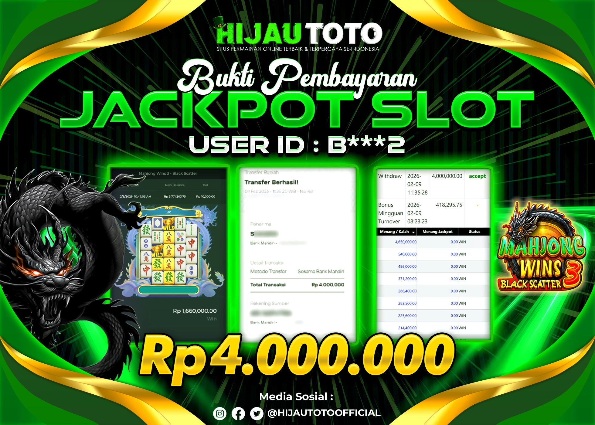 HIJAUTOTO adalah pilihan terbaik bagi Anda yang mencari platform judi online terpercaya dengan modal terjangkau, ragam permainan lengkap, bonus menguntungkan, dan layanan profesional 24 jam. Semua kebutuhan hiburan dan keuntungan Anda terpenuhi dalam satu tempat.