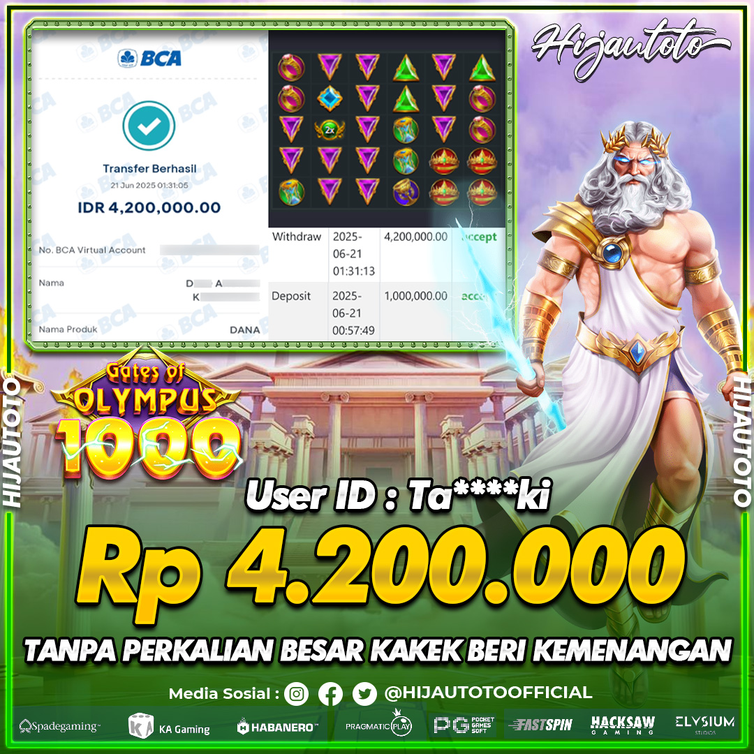 Selamat datang di HIJAUTOTO, tempatnya seru-seruan dan cuan besar! Mulai main cukup dengan modal Rp5.000 aja, taruhan super murah dari Rp100 perak! Mau main slot yang penuh warna? Atau togel dari 20 pasaran paling hits? Atau mungkin tembak ikan yang bikin deg-degan? Tenang, ada juga taruhan bola, sabung ayam, dan live casino yang bikin suasana makin hidup! Daftar sekarang dan dapetin bonus new member 100% langsung, biar modalmu makin tebal. Deposit gampang banget, bisa pakai QRIS, dan kalau butuh bantuan, customer service kita siap 24 jam nonstop. Jadi, tunggu apa lagi? Yuk, gabung dan bawa pulang kemenangannya cuma di HIJAUTOTO!
