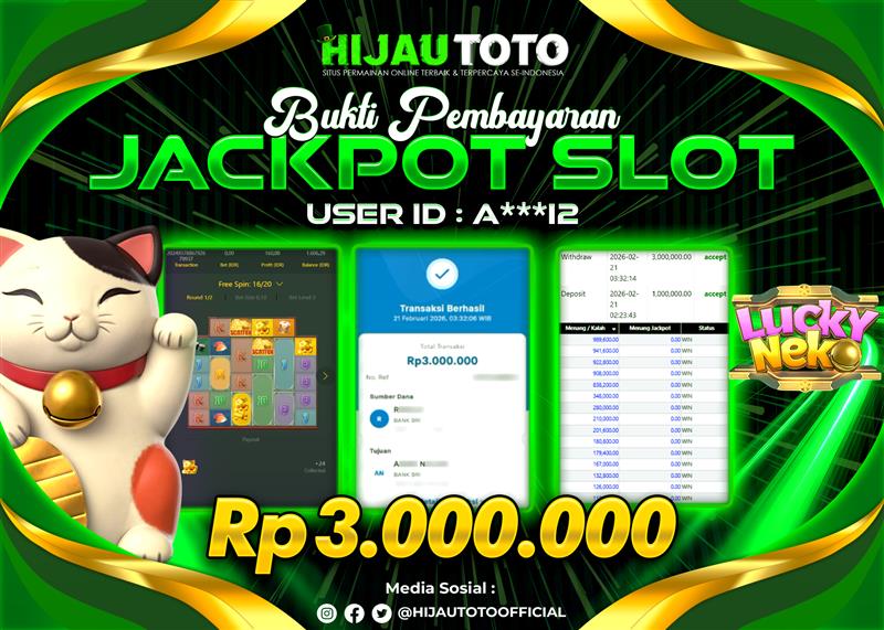 Selamat Kepada Member HIJAUTOTO A****3 Telah Jackpot Di SLOT LUCKY NEKO