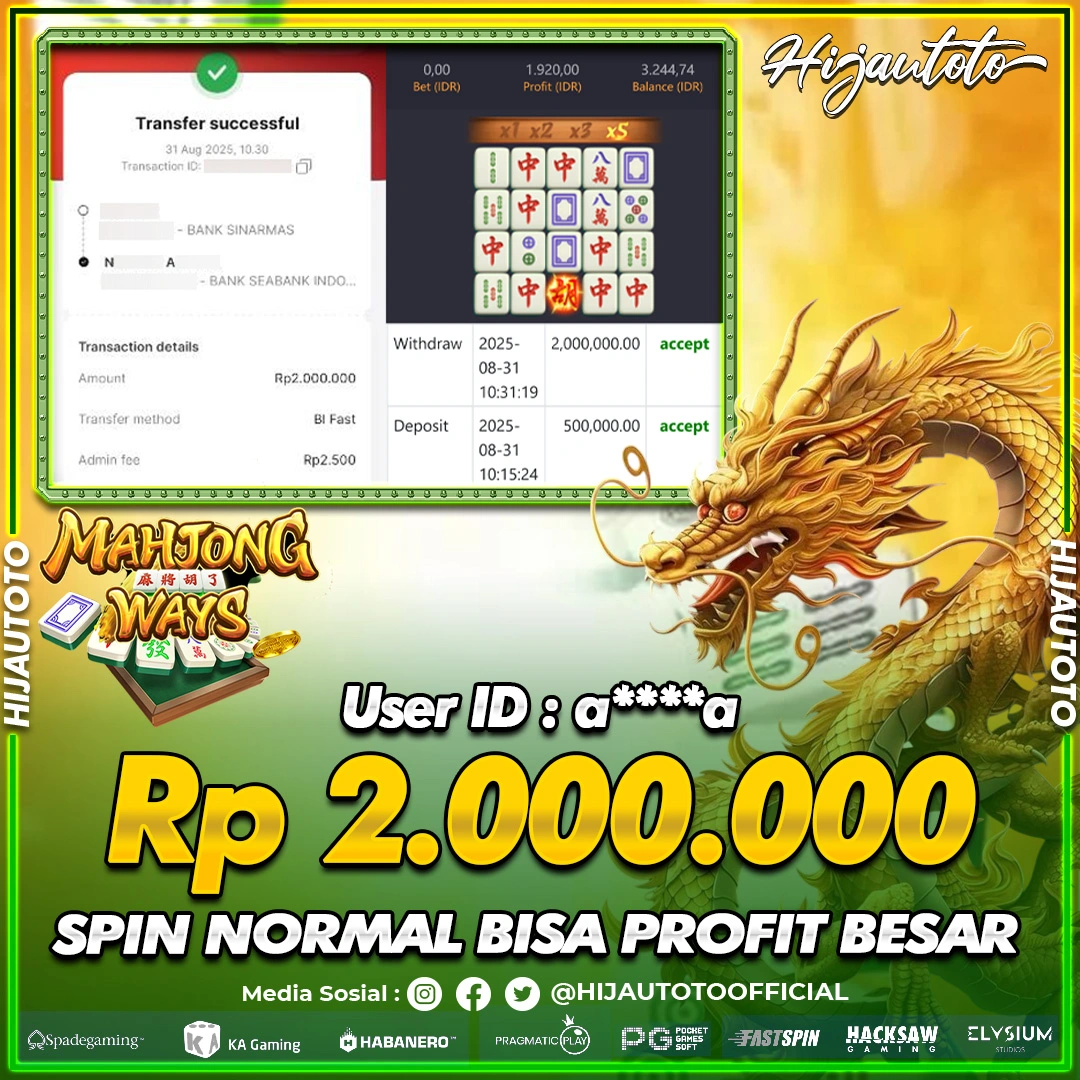 Selamat datang di HIJAUTOTO, tempatnya seru-seruan dan cuan besar! Mulai main cukup dengan modal Rp5.000 aja, taruhan super murah dari Rp100 perak! Mau main slot yang penuh warna? Atau togel dari 20 pasaran paling hits? Atau mungkin tembak ikan yang bikin deg-degan? Tenang, ada juga taruhan bola, sabung ayam, dan live casino yang bikin suasana makin hidup! Daftar sekarang dan dapetin bonus new member 100% langsung, biar modalmu makin tebal. Deposit gampang banget, bisa pakai QRIS, dan kalau butuh bantuan, customer service kita siap 24 jam nonstop. Jadi, tunggu apa lagi? Yuk, gabung dan bawa pulang kemenangannya cuma di HIJAUTOTO!