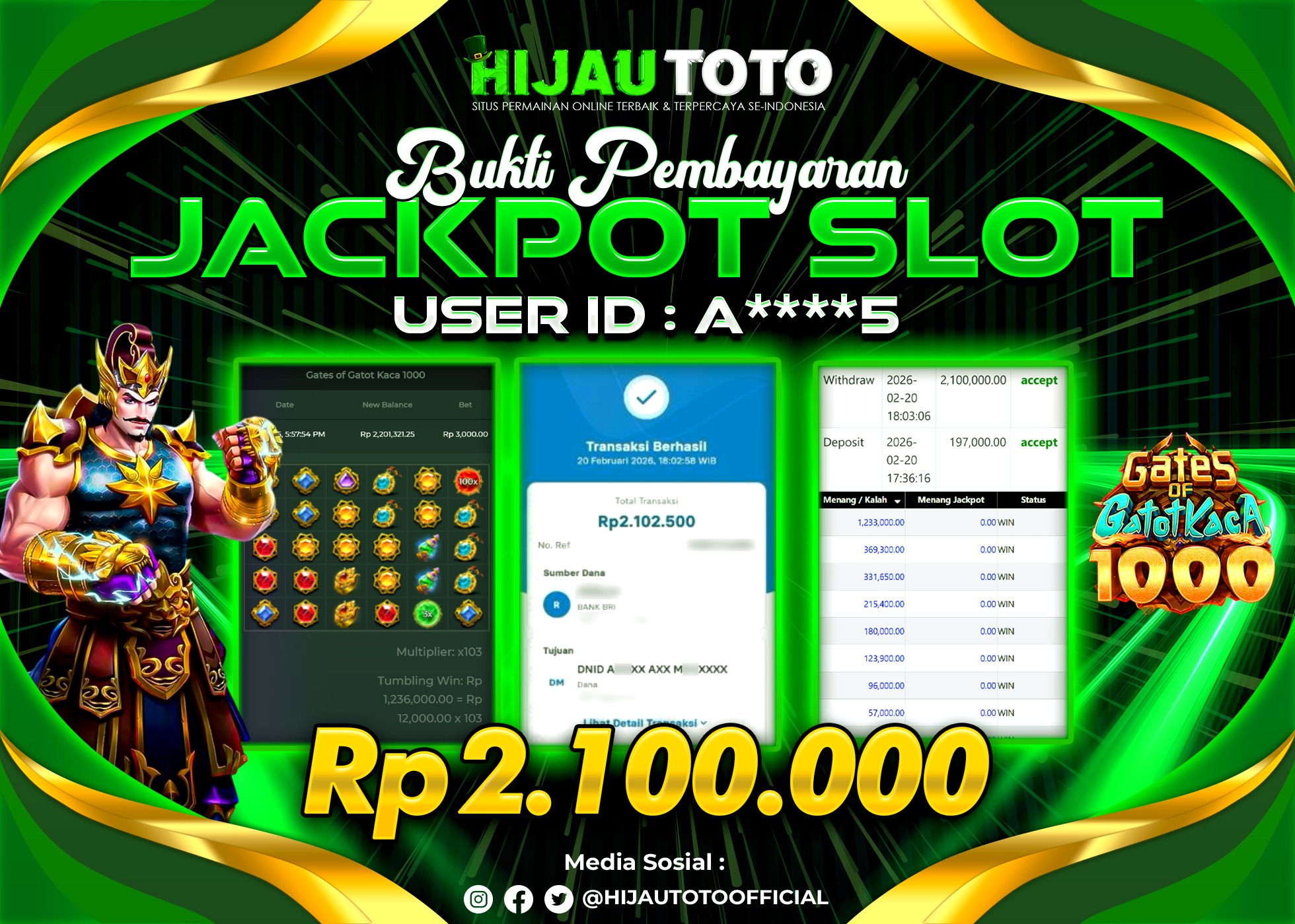 Selamat datang di HIJAUTOTO, tempatnya seru-seruan dan cuan besar! Mulai main cukup dengan modal Rp5.000 aja, taruhan super murah dari Rp100 perak! Mau main slot yang penuh warna? Atau togel dari 20 pasaran paling hits? Atau mungkin tembak ikan yang bikin deg-degan? Tenang, ada juga taruhan bola, sabung ayam, dan live casino yang bikin suasana makin hidup! Daftar sekarang dan dapetin bonus new member 100% langsung, biar modalmu makin tebal. Deposit gampang banget, bisa pakai QRIS, dan kalau butuh bantuan, customer service kita siap 24 jam nonstop. Jadi, tunggu apa lagi? Yuk, gabung dan bawa pulang kemenangannya cuma di HIJAUTOTO!