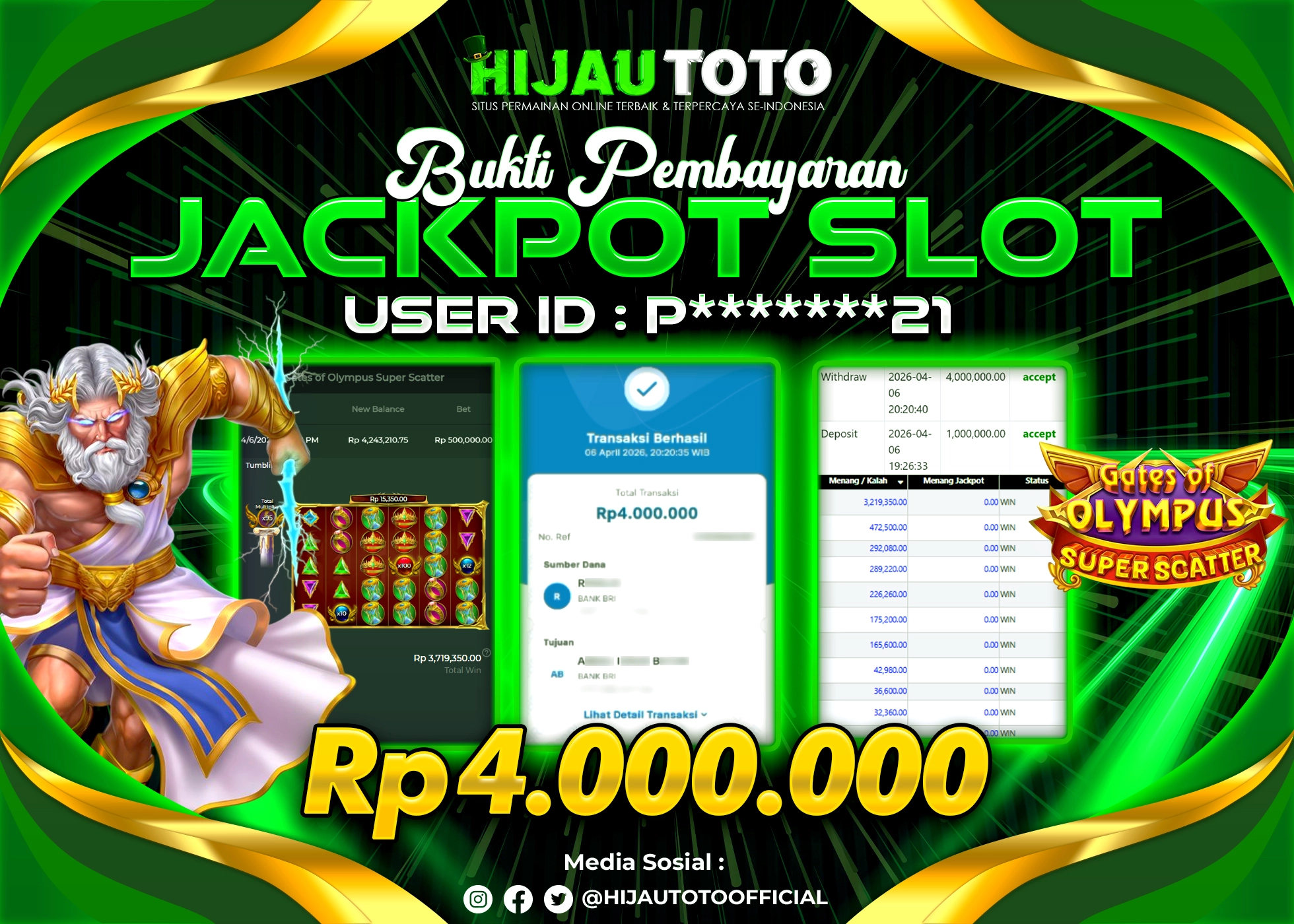 Selamat datang di HIJAUTOTO, tempatnya seru-seruan dan cuan besar! Mulai main cukup dengan modal Rp5.000 aja, taruhan super murah dari Rp100 perak! Mau main slot yang penuh warna? Atau togel dari 20 pasaran paling hits? Atau mungkin tembak ikan yang bikin deg-degan? Tenang, ada juga taruhan bola, sabung ayam, dan live casino yang bikin suasana makin hidup! Daftar sekarang dan dapetin bonus new member 100% langsung, biar modalmu makin tebal. Deposit gampang banget, bisa pakai QRIS, dan kalau butuh bantuan, customer service kita siap 24 jam nonstop. Jadi, tunggu apa lagi? Yuk, gabung dan bawa pulang kemenangannya cuma di HIJAUTOTO!