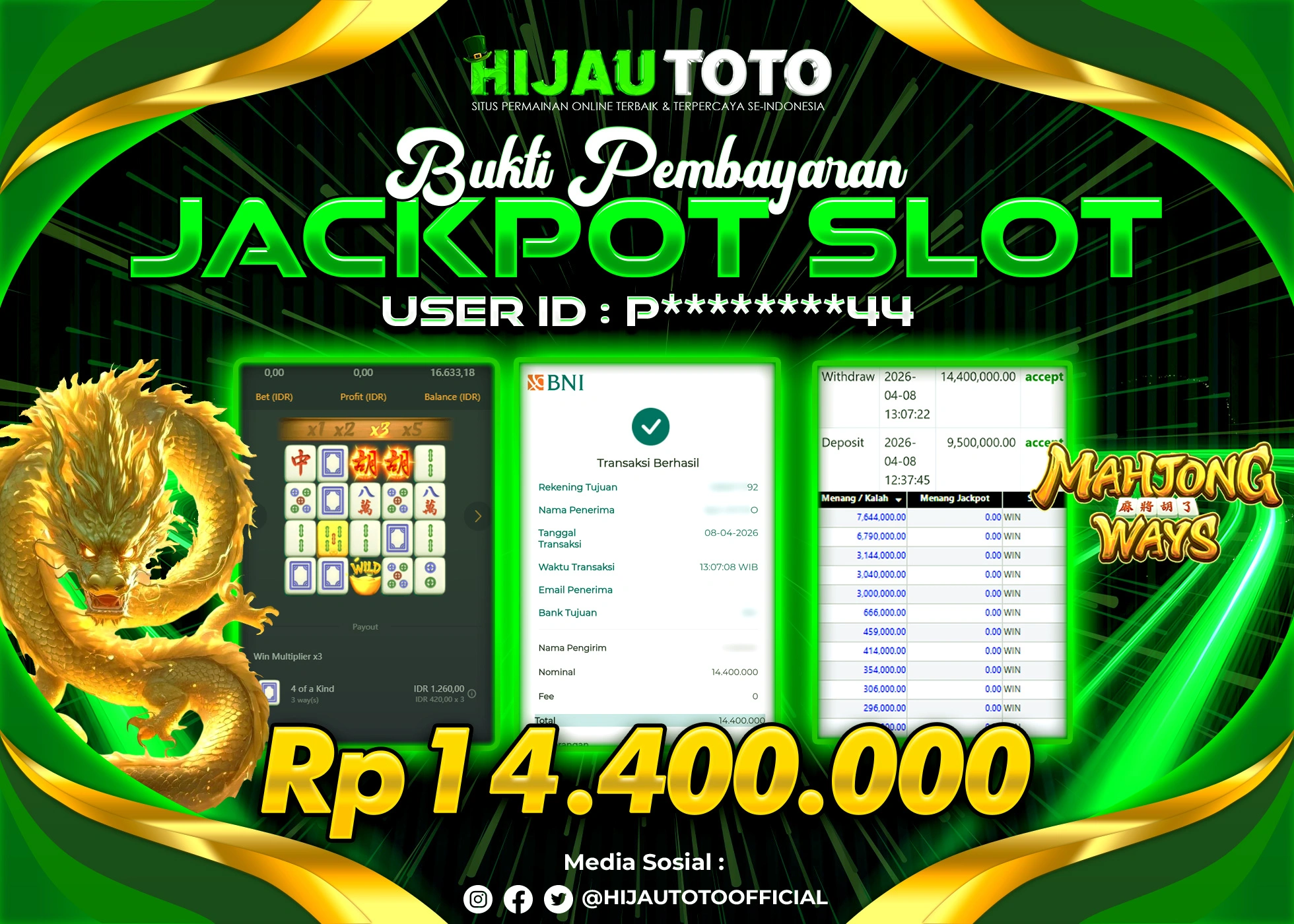 Selamat datang di HIJAUTOTO, tempatnya seru-seruan dan cuan besar! Mulai main cukup dengan modal Rp5.000 aja, taruhan super murah dari Rp100 perak! Mau main slot yang penuh warna? Atau togel dari 20 pasaran paling hits? Atau mungkin tembak ikan yang bikin deg-degan? Tenang, ada juga taruhan bola, sabung ayam, dan live casino yang bikin suasana makin hidup! Daftar sekarang dan dapetin bonus new member 100% langsung, biar modalmu makin tebal. Deposit gampang banget, bisa pakai QRIS, dan kalau butuh bantuan, customer service kita siap 24 jam nonstop. Jadi, tunggu apa lagi? Yuk, gabung dan bawa pulang kemenangannya cuma di HIJAUTOTO!