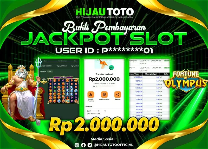 Selamat datang di HIJAUTOTO, tempatnya seru-seruan dan cuan besar! Mulai main cukup dengan modal Rp5.000 aja, taruhan super murah dari Rp100 perak! Mau main slot yang penuh warna? Atau togel dari 20 pasaran paling hits? Atau mungkin tembak ikan yang bikin deg-degan? Tenang, ada juga taruhan bola, sabung ayam, dan live casino yang bikin suasana makin hidup! Daftar sekarang dan dapetin bonus new member 100% langsung, biar modalmu makin tebal. Deposit gampang banget, bisa pakai QRIS, dan kalau butuh bantuan, customer service kita siap 24 jam nonstop. Jadi, tunggu apa lagi? Yuk, gabung dan bawa pulang kemenangannya cuma di HIJAUTOTO!