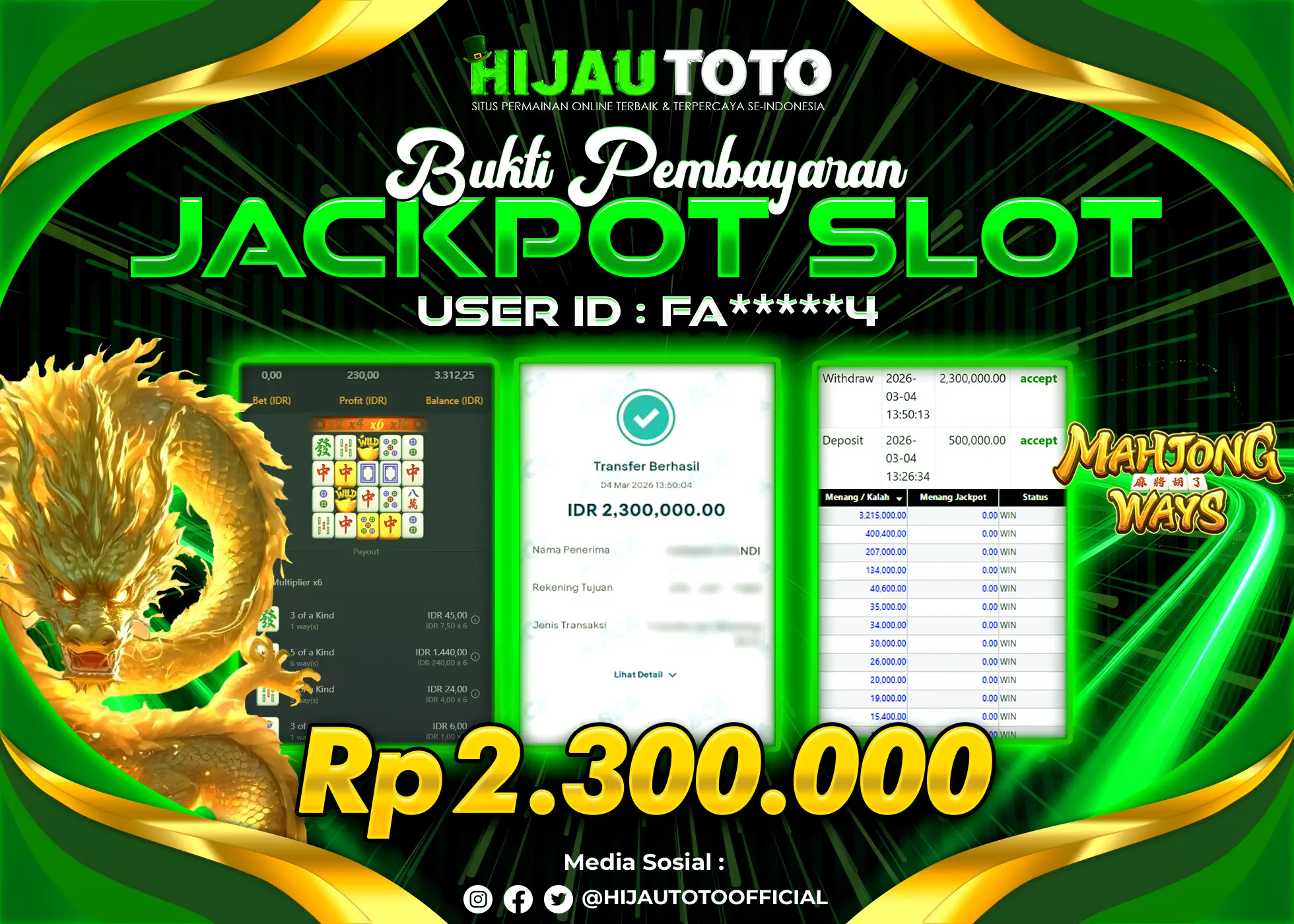 Selamat datang di HIJAUTOTO, tempatnya seru-seruan dan cuan besar! Mulai main cukup dengan modal Rp5.000 aja, taruhan super murah dari Rp100 perak! Mau main slot yang penuh warna? Atau togel dari 20 pasaran paling hits? Atau mungkin tembak ikan yang bikin deg-degan? Tenang, ada juga taruhan bola, sabung ayam, dan live casino yang bikin suasana makin hidup! Daftar sekarang dan dapetin bonus new member 100% langsung, biar modalmu makin tebal. Deposit gampang banget, bisa pakai QRIS, dan kalau butuh bantuan, customer service kita siap 24 jam nonstop. Jadi, tunggu apa lagi? Yuk, gabung dan bawa pulang kemenangannya cuma di HIJAUTOTO!