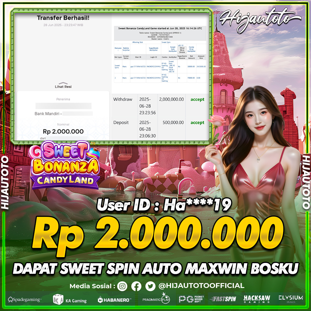 Karena berhasil memenangkan Rp.Rp.2.000.000 dari permainan seru SLOT SWEET BONANZA SUPER SCATTER di HIJAUTOTO! πŸ’°πŸ’Έ