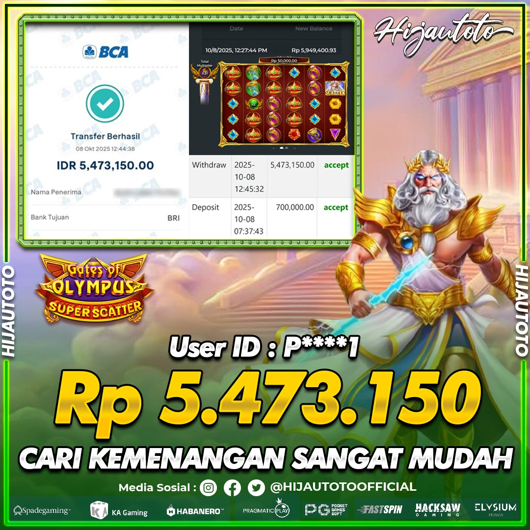 Karena berhasil memenangkan Rp.Rp.5.500.000 dari permainan seru SLOT GATES OF OLYMPUS 1000 di HIJAUTOTO! πŸ’°πŸ’Έ