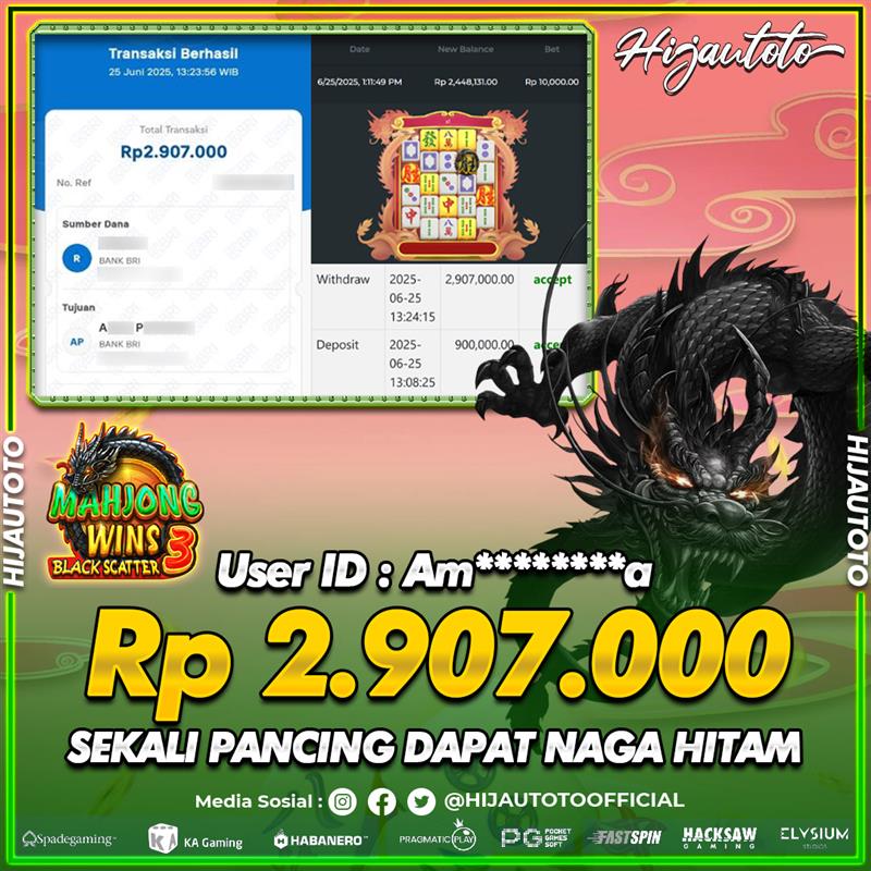 Selamat Kepada Member HIJAUTOTO AM********A Telah Jackpot Di SLOT MAHJONG WINS 3 BLACK SCATTER