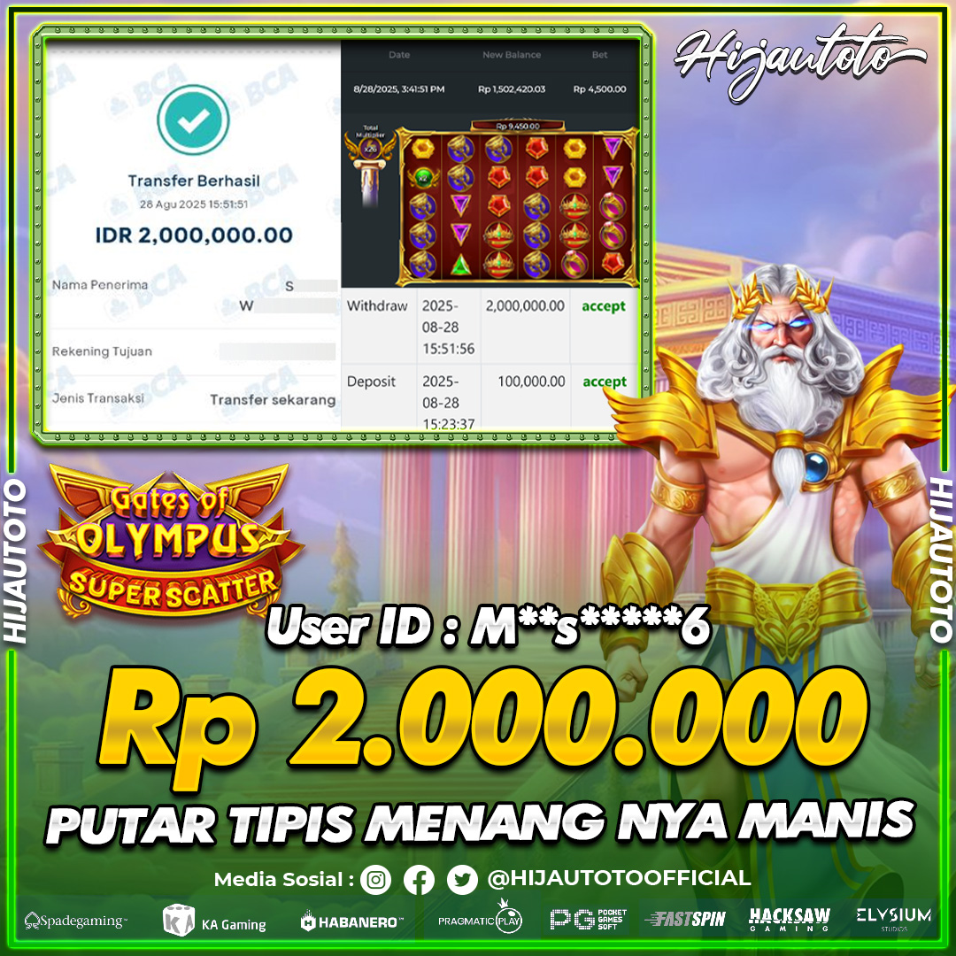 Cuma di HIJAUTOTO, tempat paling AMAN, CEPAT, & TERPERCAYA buat pecinta game SLOT GATES OF OLYMPUS SUPER SCATTER!