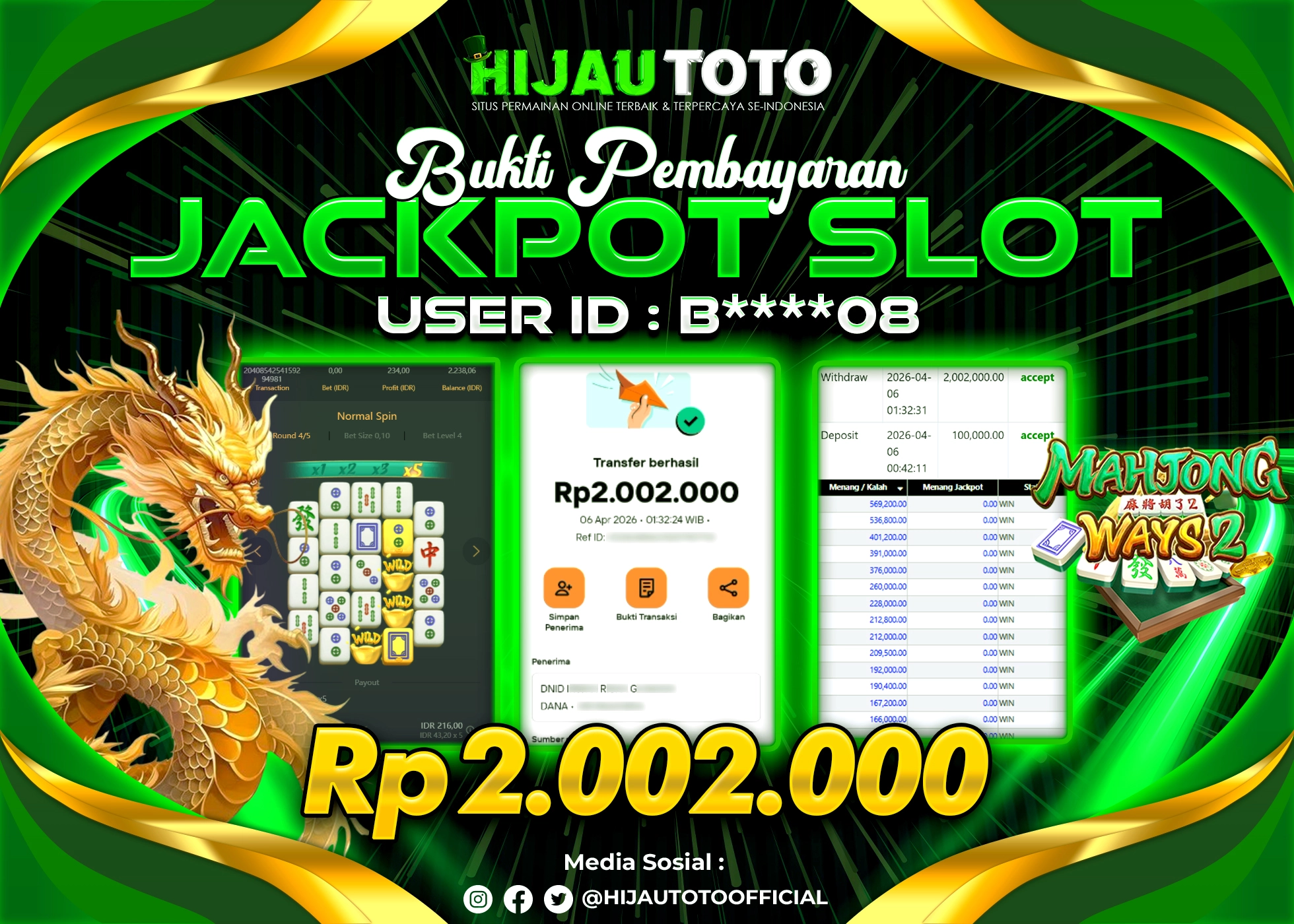Selamat datang di HIJAUTOTO, tempatnya seru-seruan dan cuan besar! Mulai main cukup dengan modal Rp5.000 aja, taruhan super murah dari Rp100 perak! Mau main slot yang penuh warna? Atau togel dari 20 pasaran paling hits? Atau mungkin tembak ikan yang bikin deg-degan? Tenang, ada juga taruhan bola, sabung ayam, dan live casino yang bikin suasana makin hidup! Daftar sekarang dan dapetin bonus new member 100% langsung, biar modalmu makin tebal. Deposit gampang banget, bisa pakai QRIS, dan kalau butuh bantuan, customer service kita siap 24 jam nonstop. Jadi, tunggu apa lagi? Yuk, gabung dan bawa pulang kemenangannya cuma di HIJAUTOTO!