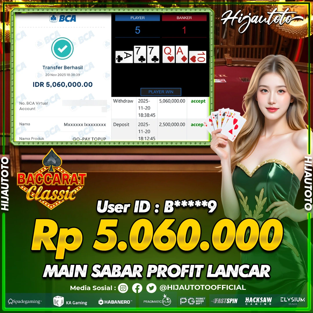 Selamat datang di HIJAUTOTO, tempatnya seru-seruan dan cuan besar! Mulai main cukup dengan modal Rp5.000 aja, taruhan super murah dari Rp100 perak! Mau main slot yang penuh warna? Atau togel dari 20 pasaran paling hits? Atau mungkin tembak ikan yang bikin deg-degan? Tenang, ada juga taruhan bola, sabung ayam, dan live casino yang bikin suasana makin hidup! Daftar sekarang dan dapetin bonus new member 100% langsung, biar modalmu makin tebal. Deposit gampang banget, bisa pakai QRIS, dan kalau butuh bantuan, customer service kita siap 24 jam nonstop. Jadi, tunggu apa lagi? Yuk, gabung dan bawa pulang kemenangannya cuma di HIJAUTOTO!