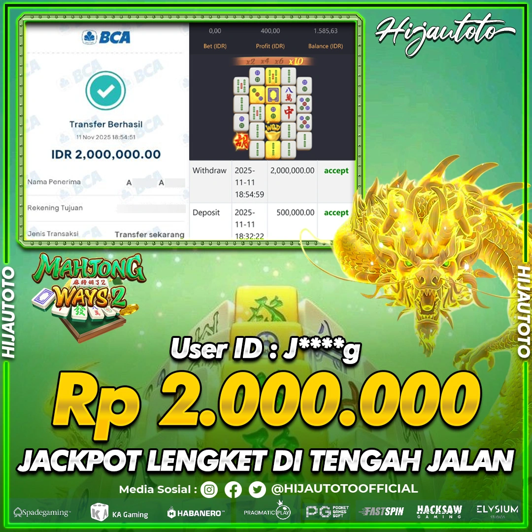 Selamat datang di HIJAUTOTO, tempatnya seru-seruan dan cuan besar! Mulai main cukup dengan modal Rp5.000 aja, taruhan super murah dari Rp100 perak! Mau main slot yang penuh warna? Atau togel dari 20 pasaran paling hits? Atau mungkin tembak ikan yang bikin deg-degan? Tenang, ada juga taruhan bola, sabung ayam, dan live casino yang bikin suasana makin hidup! Daftar sekarang dan dapetin bonus new member 100% langsung, biar modalmu makin tebal. Deposit gampang banget, bisa pakai QRIS, dan kalau butuh bantuan, customer service kita siap 24 jam nonstop. Jadi, tunggu apa lagi? Yuk, gabung dan bawa pulang kemenangannya cuma di HIJAUTOTO!