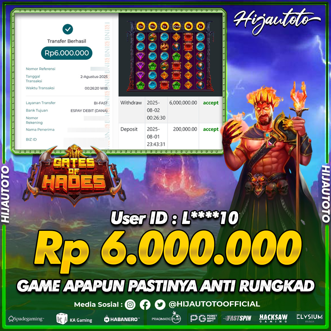 Selamat datang di HIJAUTOTO, tempatnya seru-seruan dan cuan besar! Mulai main cukup dengan modal Rp5.000 aja, taruhan super murah dari Rp100 perak! Mau main slot yang penuh warna? Atau togel dari 20 pasaran paling hits? Atau mungkin tembak ikan yang bikin deg-degan? Tenang, ada juga taruhan bola, sabung ayam, dan live casino yang bikin suasana makin hidup! Daftar sekarang dan dapetin bonus new member 100% langsung, biar modalmu makin tebal. Deposit gampang banget, bisa pakai QRIS, dan kalau butuh bantuan, customer service kita siap 24 jam nonstop. Jadi, tunggu apa lagi? Yuk, gabung dan bawa pulang kemenangannya cuma di HIJAUTOTO!
