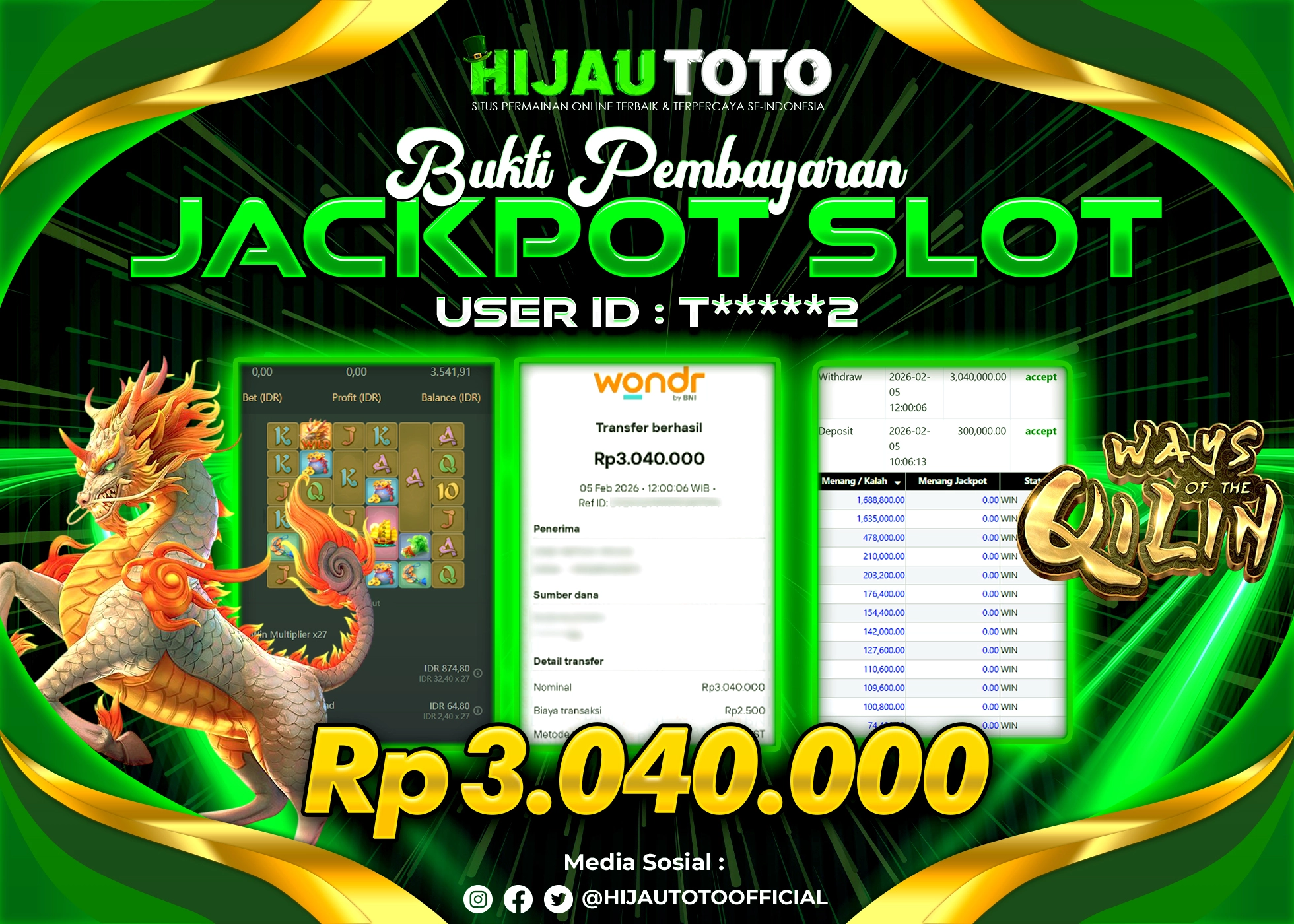 β¨ JACKPOT DI SLOT WAYS OF THE QILIN β¨