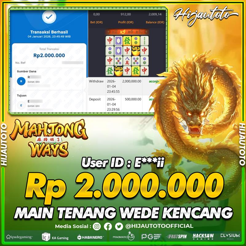Selamat datang di HIJAUTOTO, tempatnya seru-seruan dan cuan besar! Mulai main cukup dengan modal Rp5.000 aja, taruhan super murah dari Rp100 perak! Mau main slot yang penuh warna? Atau togel dari 20 pasaran paling hits? Atau mungkin tembak ikan yang bikin deg-degan? Tenang, ada juga taruhan bola, sabung ayam, dan live casino yang bikin suasana makin hidup! Daftar sekarang dan dapetin bonus new member 100% langsung, biar modalmu makin tebal. Deposit gampang banget, bisa pakai QRIS, dan kalau butuh bantuan, customer service kita siap 24 jam nonstop. Jadi, tunggu apa lagi? Yuk, gabung dan bawa pulang kemenangannya cuma di HIJAUTOTO!