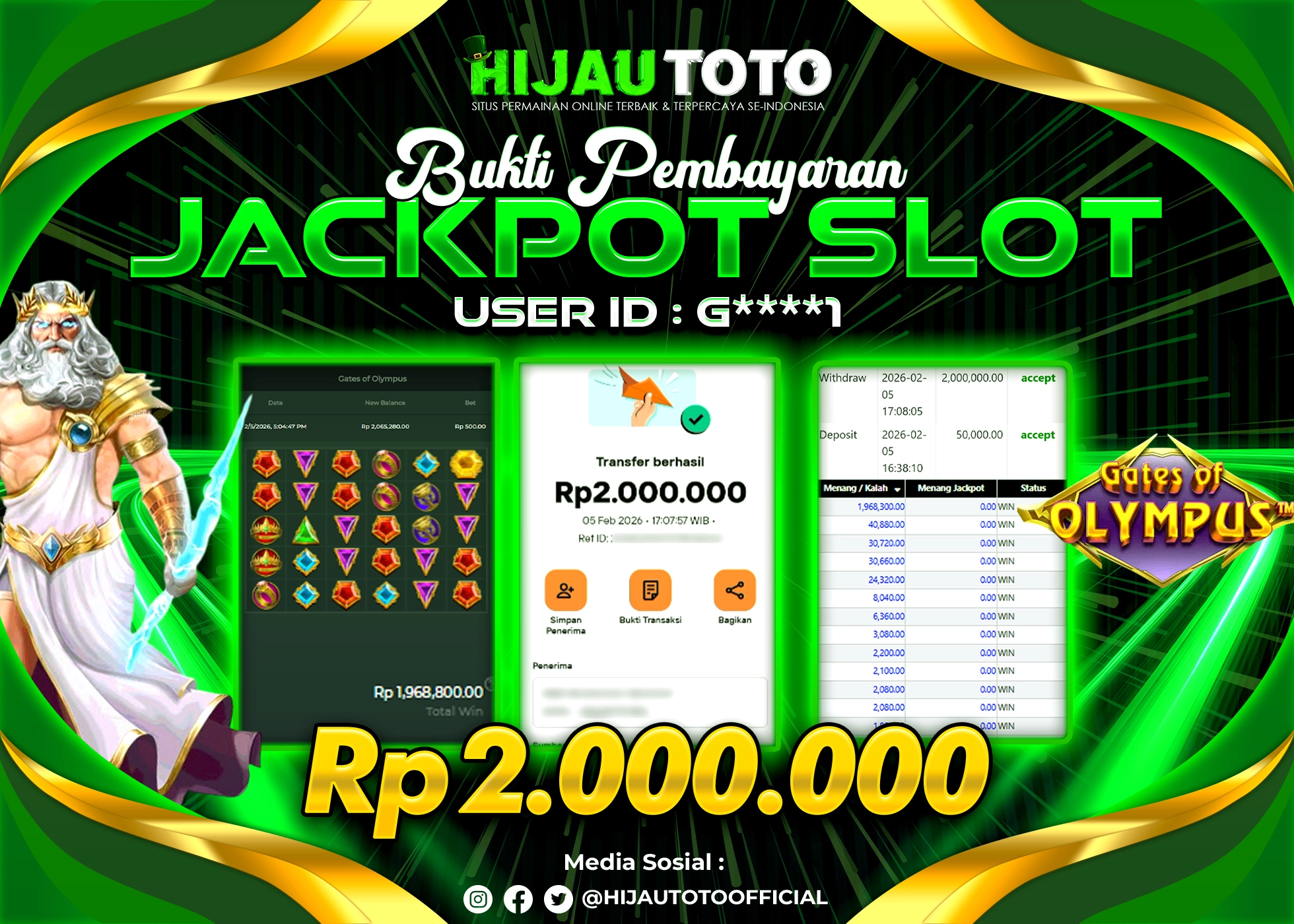 Selamat datang di HIJAUTOTO, tempatnya seru-seruan dan cuan besar! Mulai main cukup dengan modal Rp5.000 aja, taruhan super murah dari Rp100 perak! Mau main slot yang penuh warna? Atau togel dari 20 pasaran paling hits? Atau mungkin tembak ikan yang bikin deg-degan? Tenang, ada juga taruhan bola, sabung ayam, dan live casino yang bikin suasana makin hidup! Daftar sekarang dan dapetin bonus new member 100% langsung, biar modalmu makin tebal. Deposit gampang banget, bisa pakai QRIS, dan kalau butuh bantuan, customer service kita siap 24 jam nonstop. Jadi, tunggu apa lagi? Yuk, gabung dan bawa pulang kemenangannya cuma di HIJAUTOTO!
