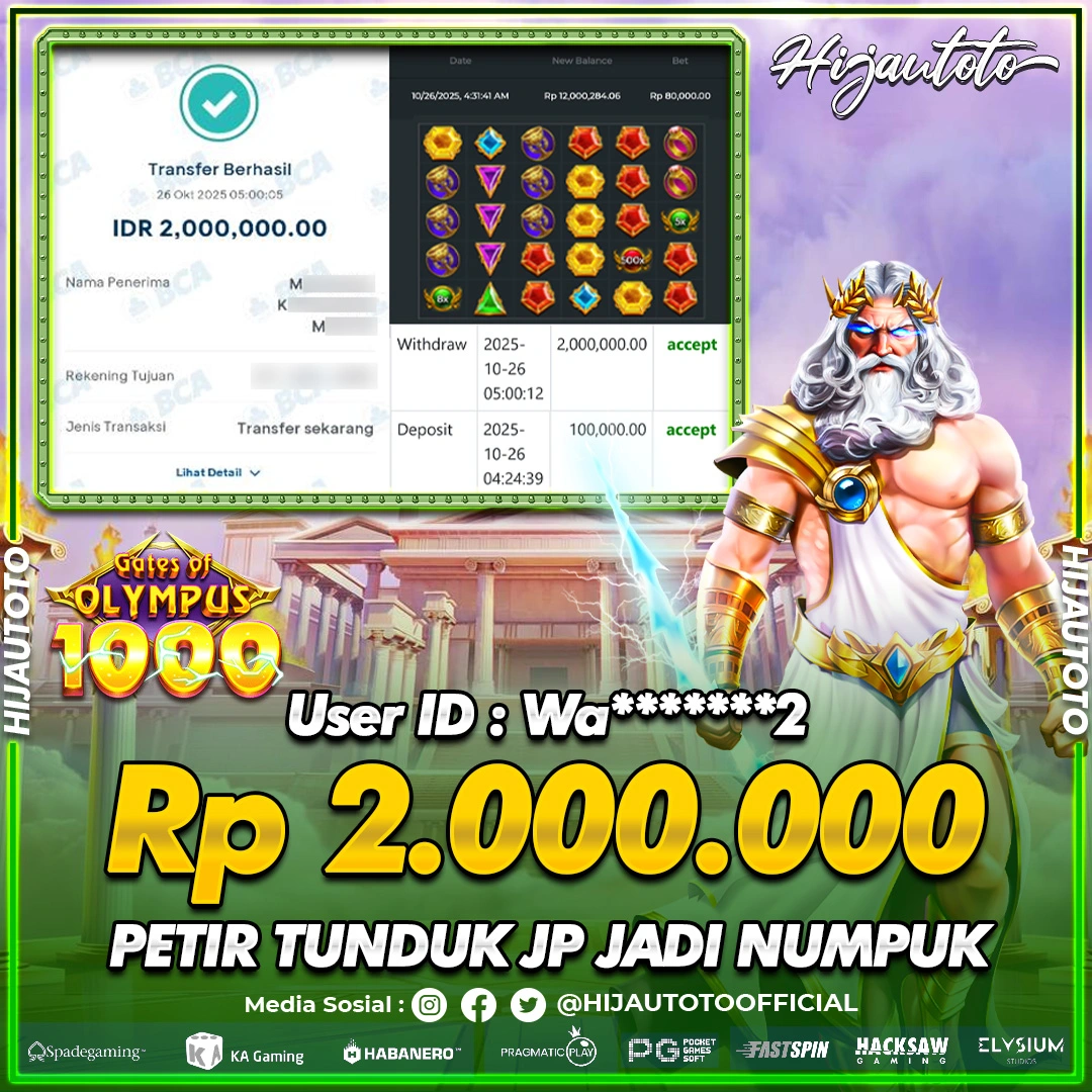 Karena berhasil memenangkan Rp.Rp.2.500.000 dari permainan seru GATES OF OLYMPUS 1000 di HIJAUTOTO! πŸ’°πŸ’Έ
