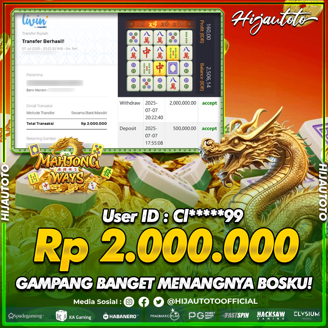 Selamat datang di HIJAUTOTO, tempatnya seru-seruan dan cuan besar! Mulai main cukup dengan modal Rp5.000 aja, taruhan super murah dari Rp100 perak! Mau main slot yang penuh warna? Atau togel dari 20 pasaran paling hits? Atau mungkin tembak ikan yang bikin deg-degan? Tenang, ada juga taruhan bola, sabung ayam, dan live casino yang bikin suasana makin hidup! Daftar sekarang dan dapetin bonus new member 100% langsung, biar modalmu makin tebal. Deposit gampang banget, bisa pakai QRIS, dan kalau butuh bantuan, customer service kita siap 24 jam nonstop. Jadi, tunggu apa lagi? Yuk, gabung dan bawa pulang kemenangannya cuma di HIJAUTOTO!